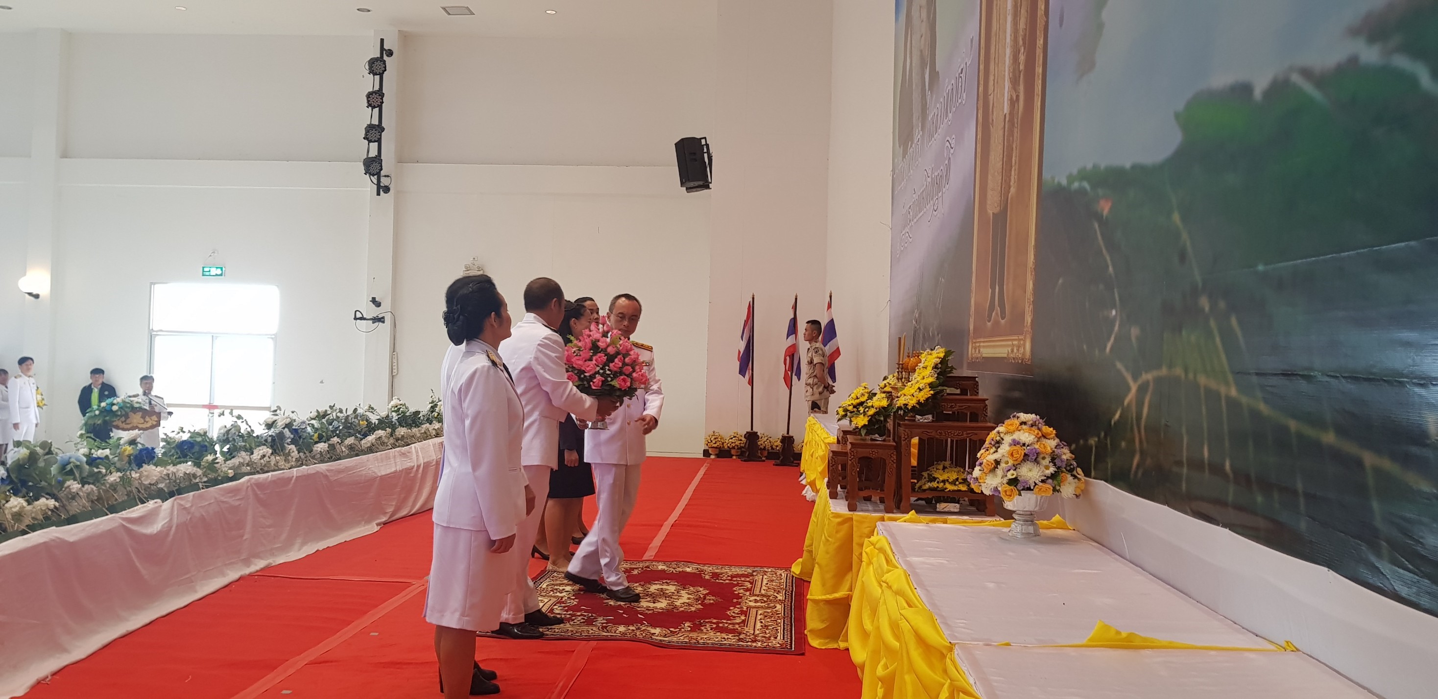พิธีวางพานพุ่มดอกไม้สด ถวายสักการะพระบาทสมเด็จพระปรมินทรมหาภูมิพลอดุลยเดชบรมนาถบพิตร ในหลวงรัชกาลที่ 9 เนื่องใน "วันพระบิดาแห่งฝนหลวง ประจำปี 2562 วันที่ 14 พฤศจิกายน 2561 ณ หอประชุมศาลากลาง |