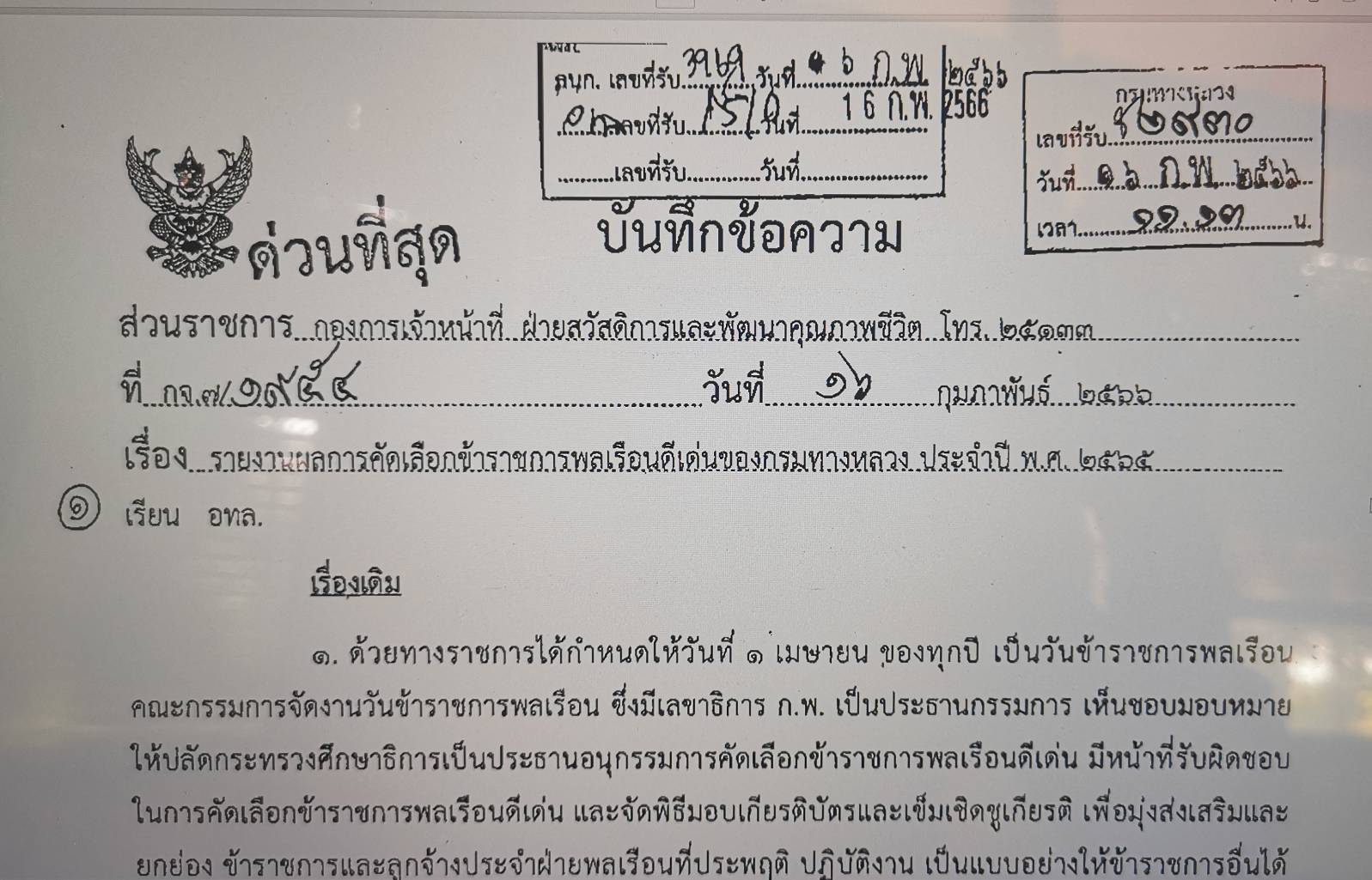 รายงานการคัดดลือกข้าราชการดีเด่น ของกรมทางหลวง 2565