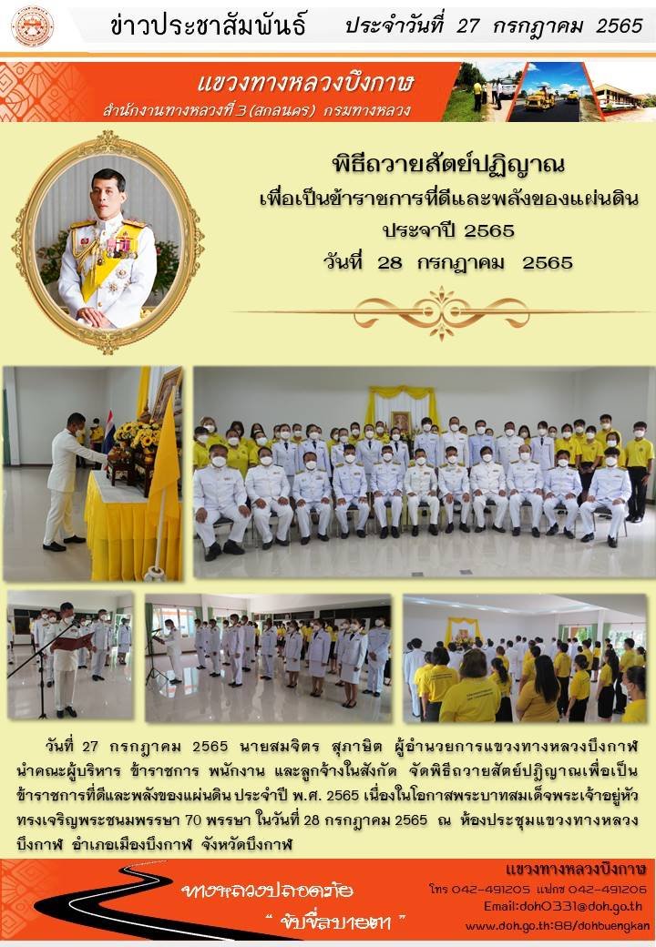 พิธีถวายสัตย์ปฏิญาณเพื่อเป็นข้าราชการที่ดีและพลังของแผ่นดิน ประจำปี พ.ศ.2565 |