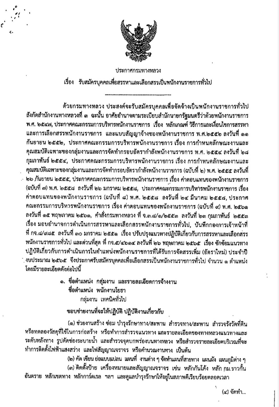 กรมทางหลวง ประกาศรับสมัครบุคคลเพื่อสรรหาและเลือกสรรเป็นพนักงานราชการทั่วไป รายละเอียดดังเอกสารแนบ