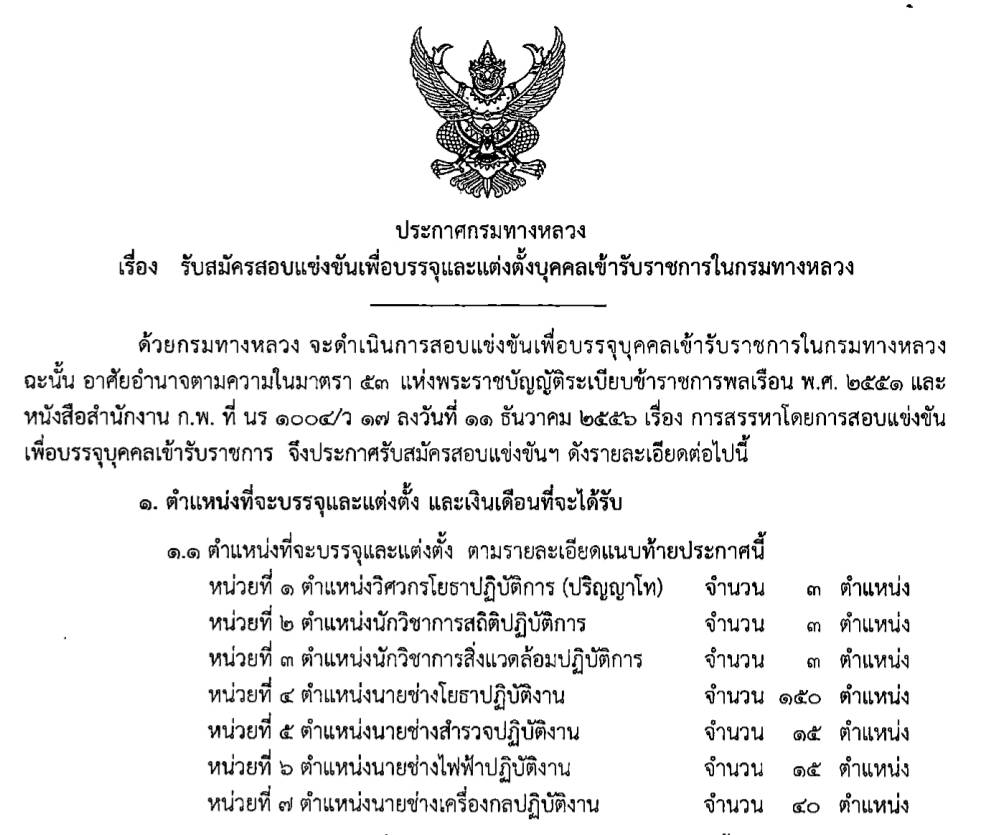 รับสมัครสอบแข่งขันเพื่อบรรจุแต่งตั้งบุคคลเข้ารับราชการในกรมทางหลวง