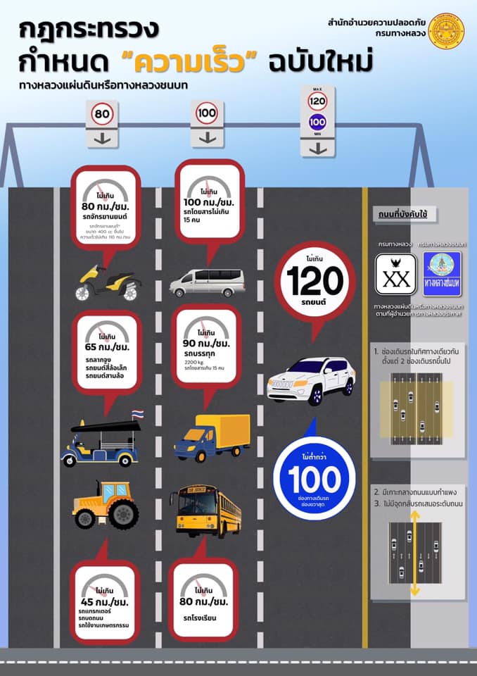 กรมทางหลวง โดยสำนักอำนวยความปลอดภัย ได้จัดทำภาพ infographic เพื่อใช้เผยแพร่ประชาสัมพันธ์เกี่ยวกับเส้นทางตามประกาศผู้อำนวยการทางหลวงแผ่นดินหมายเลข 32 บางปะอิน - พยุหะคีรี (ช่วงอยุธยา - อ่างทอง) ระหว่าง กม. 4+100 ถึง กม.50+000 ทั้งขาเข้าและขาออก เป็นเส้นทางที่ใช้ความเร็วตามกฎกระทรวงฉบับใหม่นี้ได้