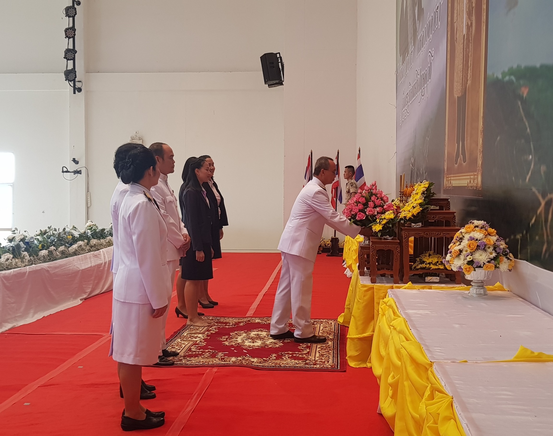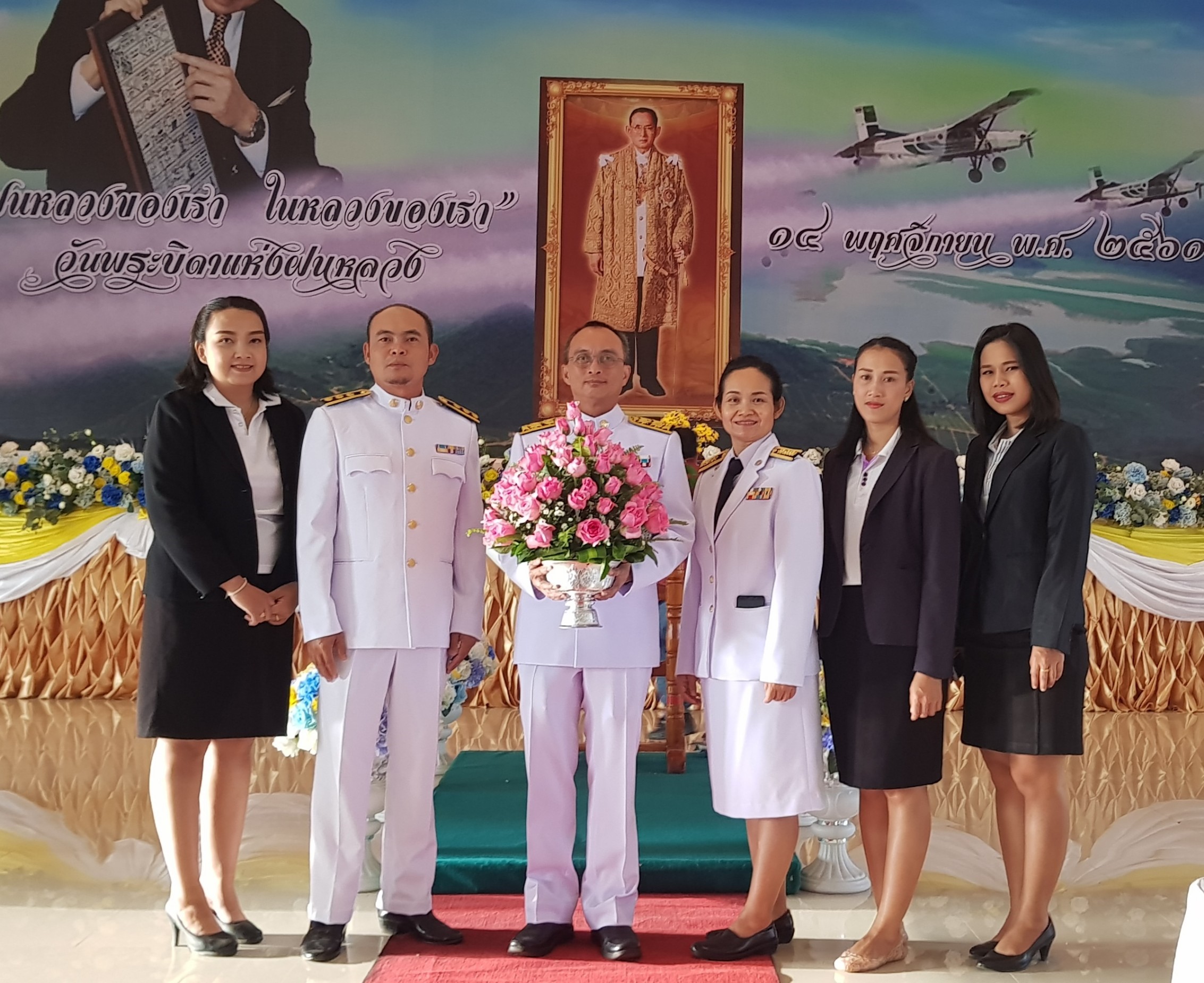 พิธีวางพานพุ่มดอกไม้สด ถวายสักการะพระบาทสมเด็จพระปรมินทรมหาภูมิพลอดุลยเดชบรมนาถบพิตร ในหลวงรัชกาลที่ 9 เนื่องใน "วันพระบิดาแห่งฝนหลวง ประจำปี 2562 วันที่ 14 พฤศจิกายน 2561 ณ หอประชุมศาลากลาง