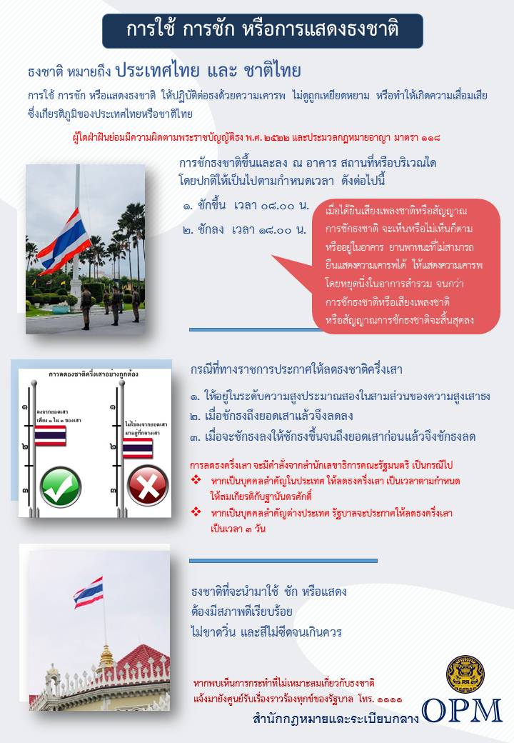 ข้อมูลข่าว : การใช้ การชัก แสดงธงชาติที่เหมาะสมและถูกต้องตามกฏหมาย