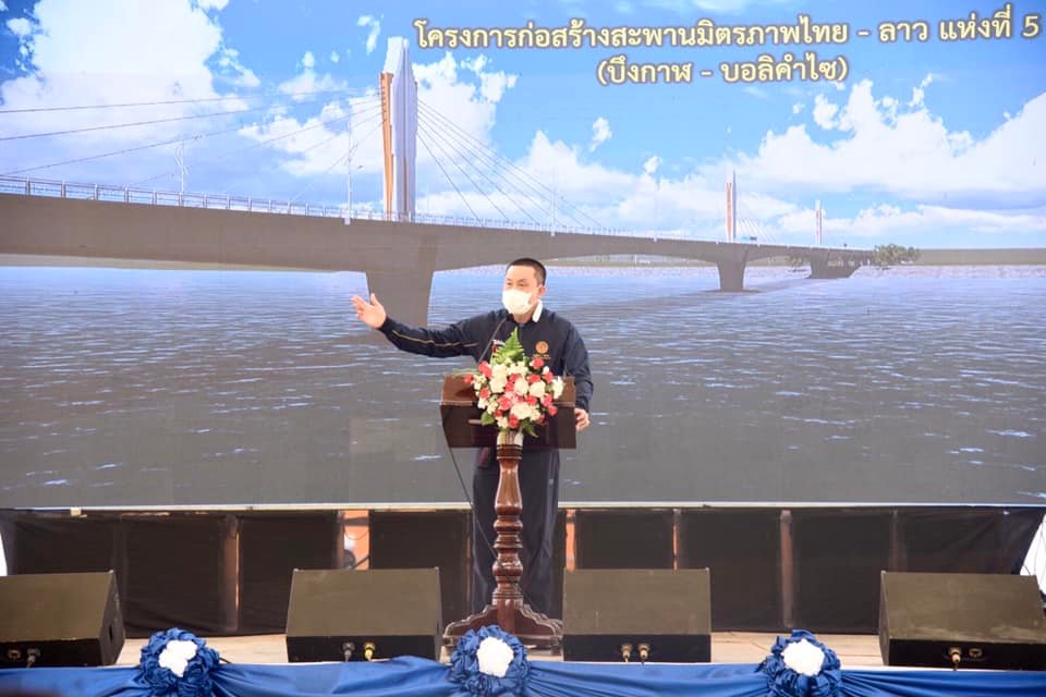 นายศักดิ์สยาม ชิดชอบ รัฐมนตรีว่าการกระทรวงคมนาคม ลงพื้นที่ติดตามความก้าวหน้าโครงการก่อสร้างสะพานมิตรภาพไทย - ลาว แห่งที่ 5 (บึงกาฬ - บอลิคำไซ) เพิ่มศักยภาพการคมนาคมขนส่ง สนับสนุนท่องเที่ยว เชื่อมโยงไทย - สปป.ลาว