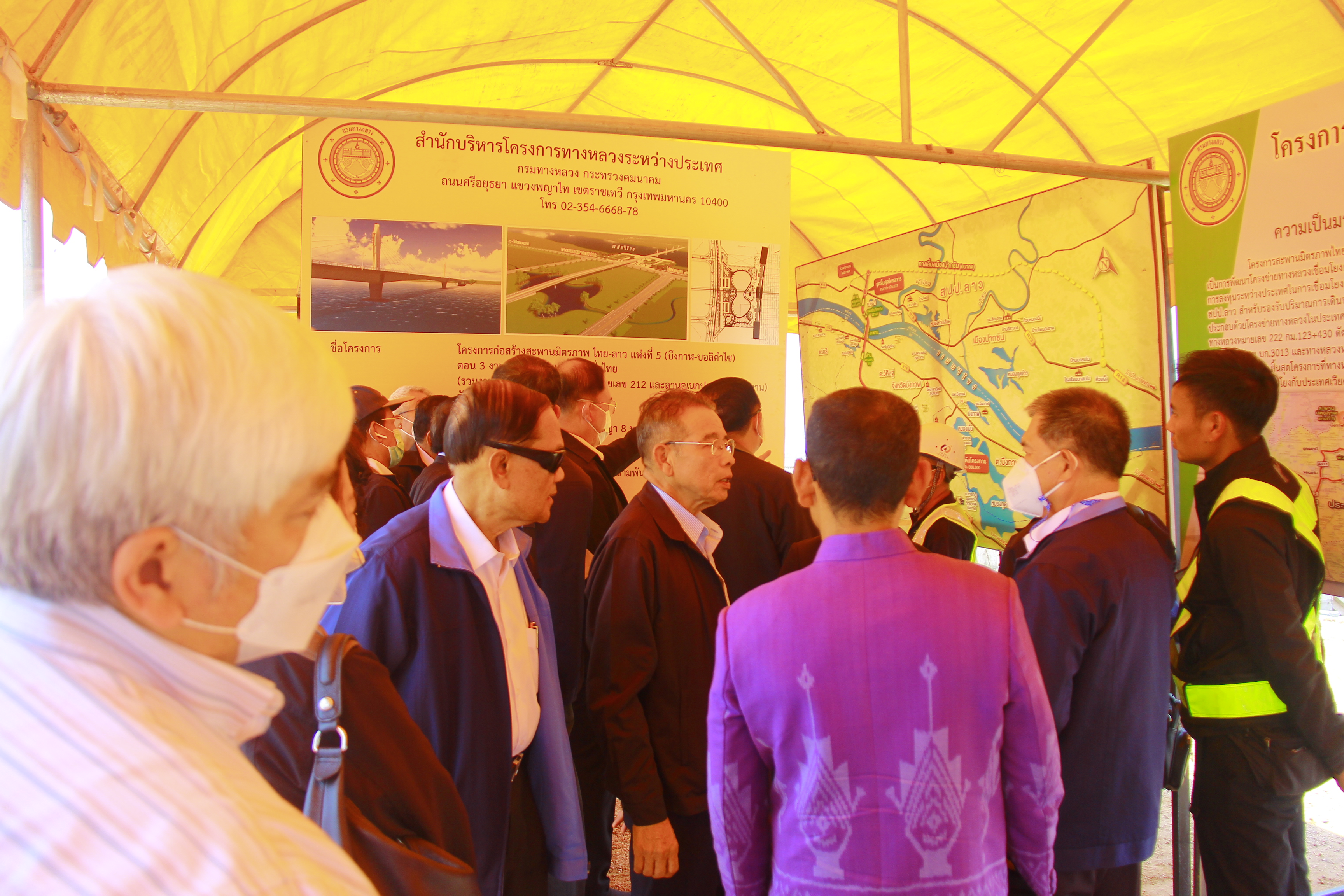 นายสมจิตร สุภาษิต ผู้อำนวยการแขวงทางหลวงบึงกาฬ ได้เข้ารับการต้อนรับคณะกรรมาธิการ วุฒิสภา ในการลงพื้นที่ตรวจเยี่ยมโครงการก่อสร้างสะพานมิตรภาพไทย-ลาว แห่งที่ 5 (บึงกาฬ - บอลิคำไซ) จ.บึงกาฬ