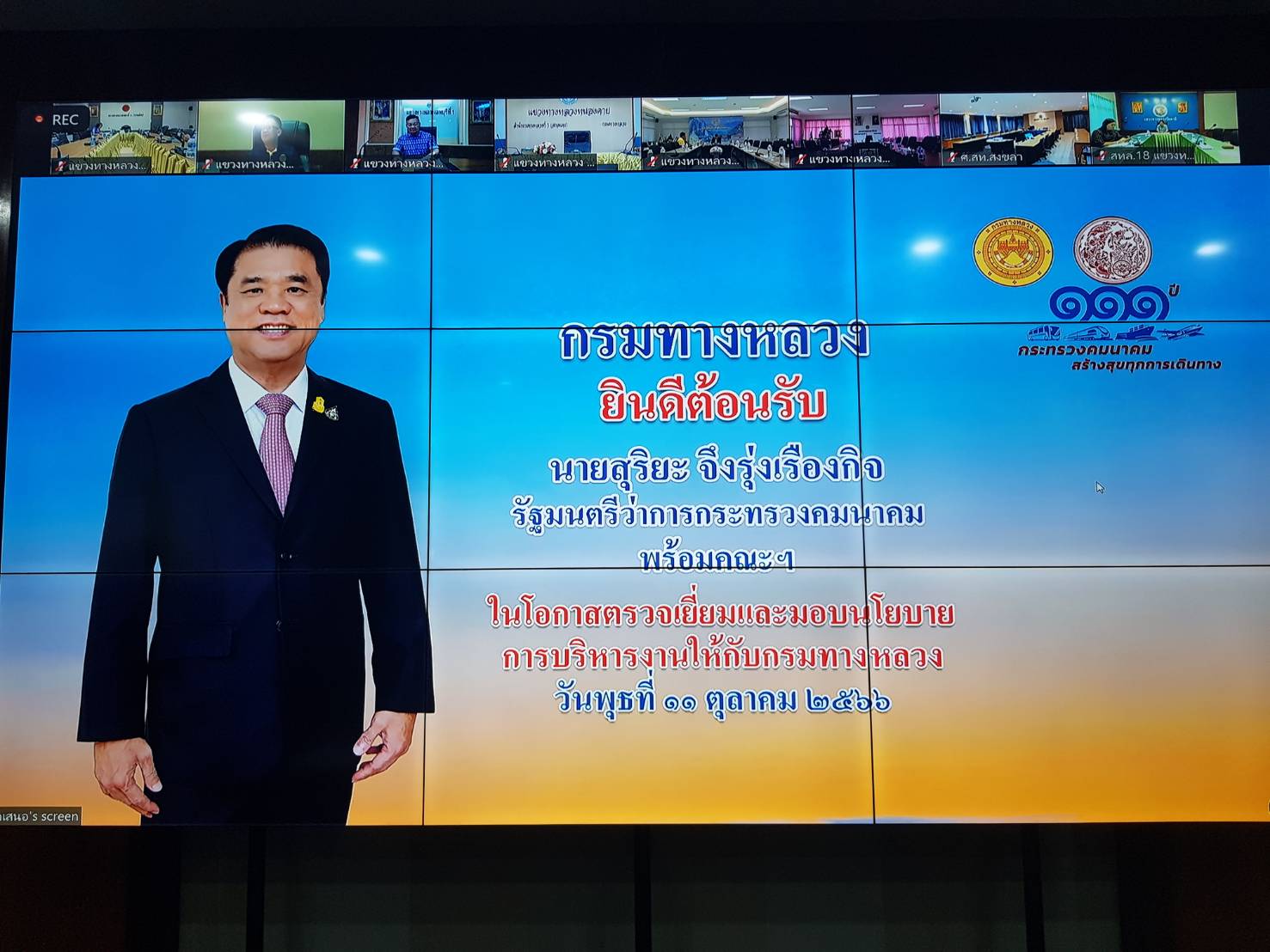 วันนี้ (11 ตุลาคม 2566) นายสุริยะ จึงรุ่งเรืองกิจ รัฐมนตรีว่าการกระทรวงคมนาคม พร้อมด้วย นายชยธรรม์ พรหมศร ปลัดกระทรวงคมนาคม และคณะฯ ตรวจเยี่ยมและมอบนโยบายการบริหารงานให้แก่กรมทางหลวง โดยมีนายสราวุธ ทรงศิวิไล อธิบดีกรมทางหลวง และคณะผู้บริหารกรมทางหลวง ร่วมให้การต้อนรับ ณ ห้องประชุมมนัส คอวนิช กรมทางหลวง