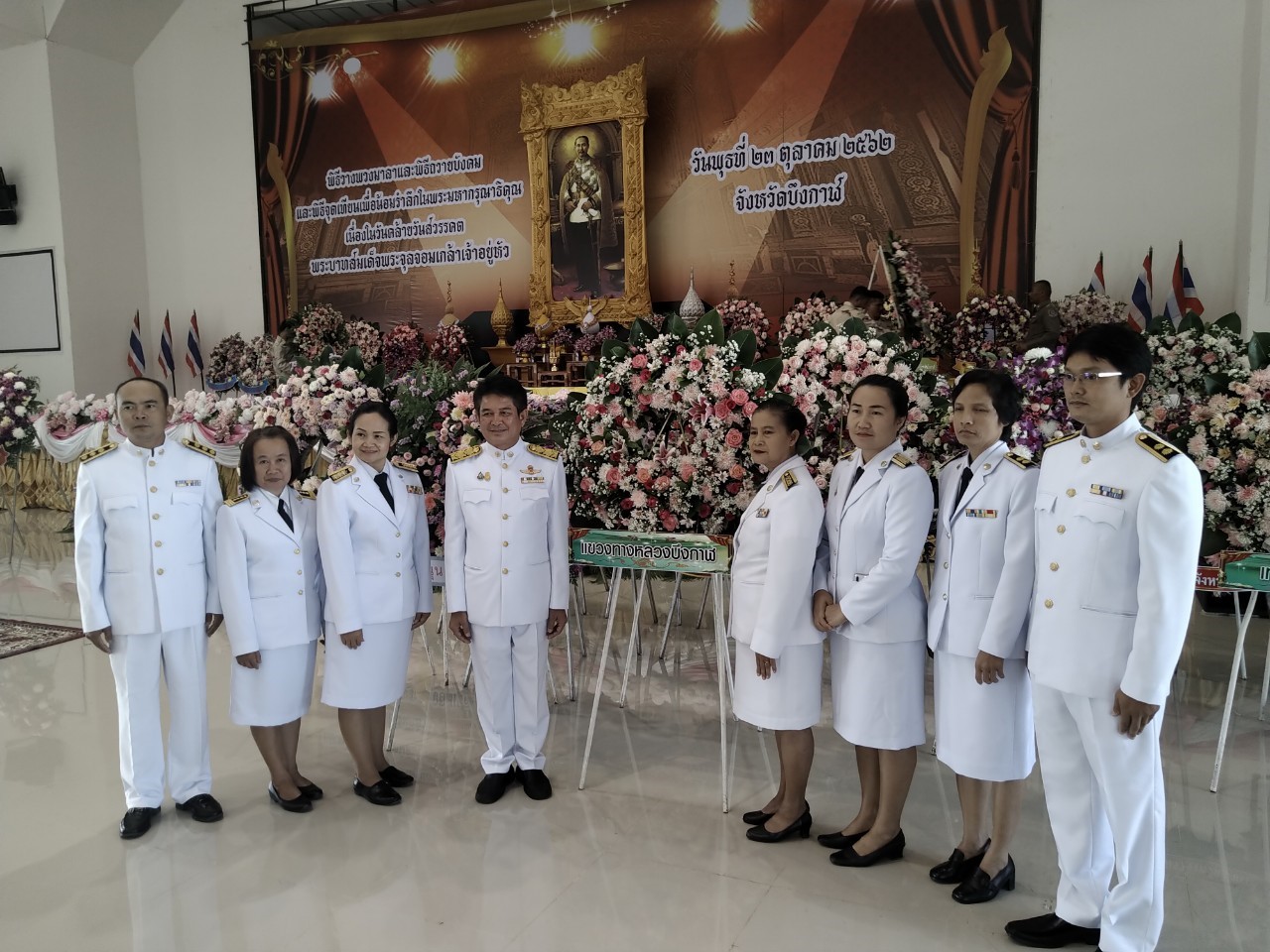 นายบุญเสริม พวงเพชร รองผู้อำนวยการแขวงทางหลวงบึงกาฬฝ่ายปฏิบัติการ พร้อมด้วยคณะเจ้าหน้าที่ ร่วมพิธีเนื่องในวันคล้ายวันสวรรคตพระบาทสมเด็จพระจุลจอมเกล้าเจ้าอยู่หัว รัชกาลที่ 5 โดยเข้าร่วมพิธีทำบุญตักบาตร เวลา 07.00 น. ณ วัดภูกระแต และพิธีวางพวงมาลาและถวายบังคม เวลา 08.00 น. ณ ศาลากลางจังหวัดบึงกาฬ