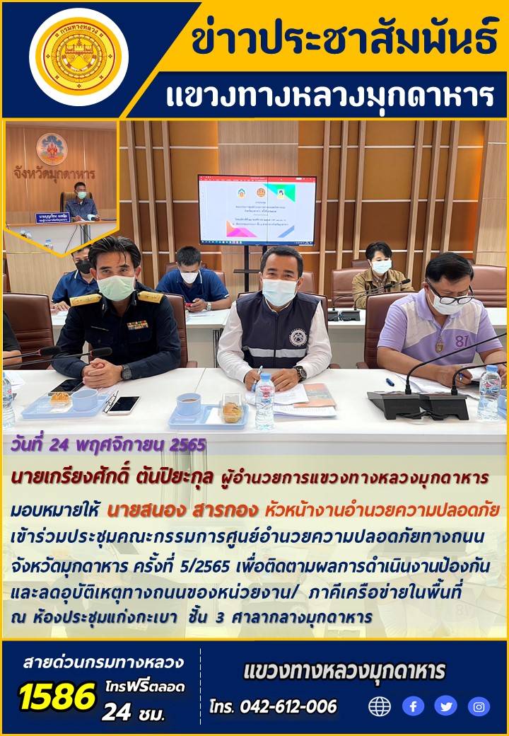 ประชุมคณะกรรมการศูนย์อำนวยความปลอดภัยทางถนนจังหวัดมุกดาหาร ครั้งที่ 5/2565