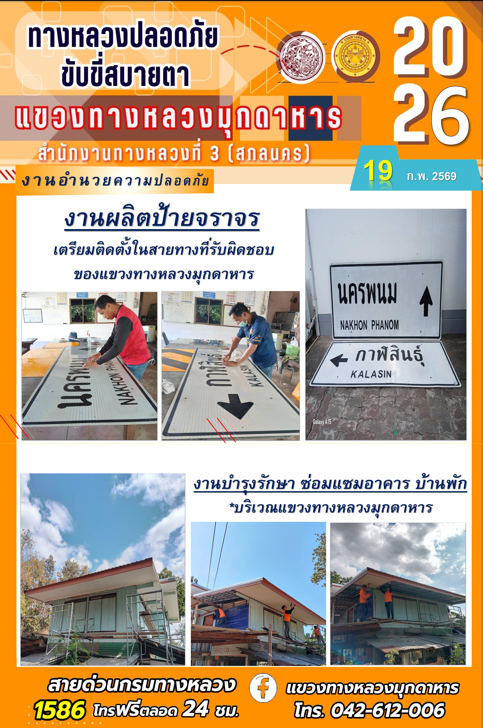 ประจำวันที่ 19 กุมภาพันธ์ 2569 โครงการทางหลวงปลอดภัย ขับขี่สบายตา หน่วยงานในสังกัดแขวงทางหลวง