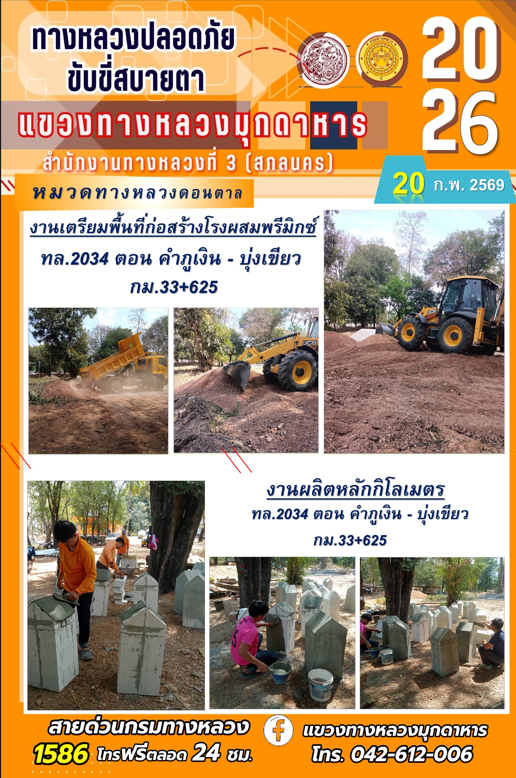 ประจำวันที่ 20 กุมภาพันธ์ 2569 โครงการทางหลวงปลอดภัย ขับขี่สบายตา หน่วยงานในสังกัดแขวงทางหลวง