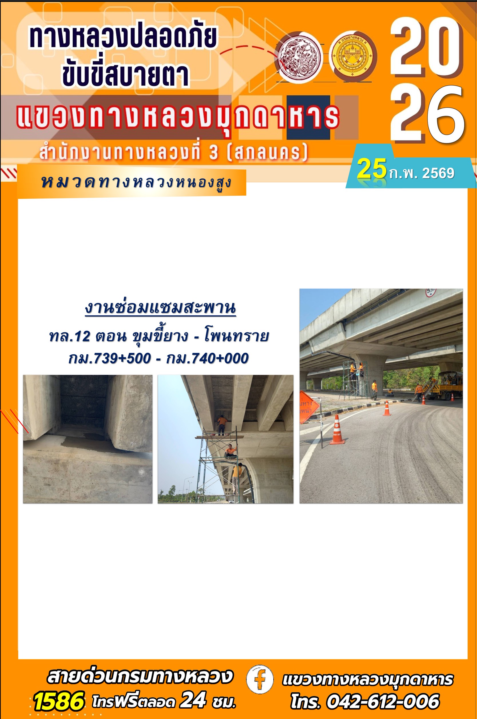 ประจำวันที่ 25 กุมภาพันธ์ 2569 โครงการทางหลวงปลอดภัย ขับขี่สบายตา หน่วยงานในสังกัดแขวงทางหลวง