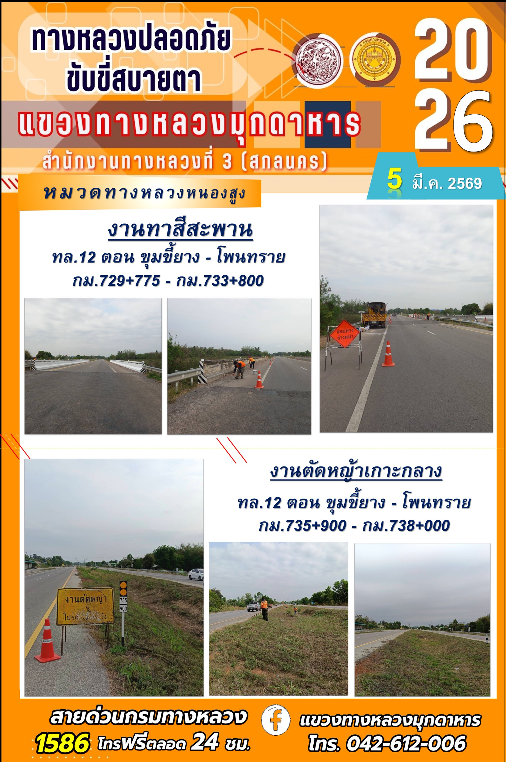 ประจำวันที่ 5 มีนาคม 2569 โครงการทางหลวงปลอดภัย ขับขี่สบายตา หน่วยงานในสังกัดแขวงทางหลวง