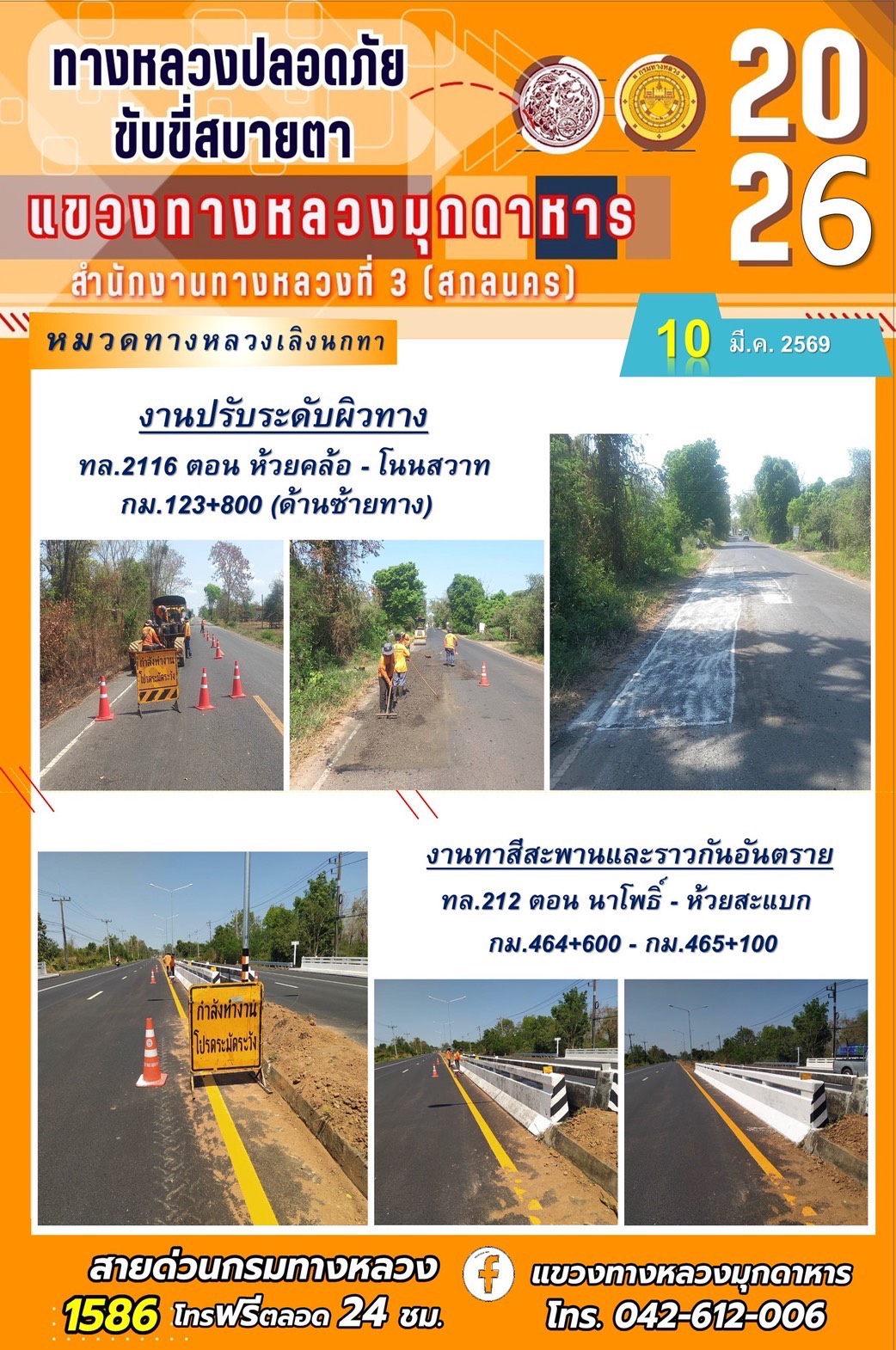 ประจำวันที่ 10 มีนาคม 2569 โครงการทางหลวงปลอดภัย ขับขี่สบายตา หน่วยงานในสังกัดแขวงทางหลวง