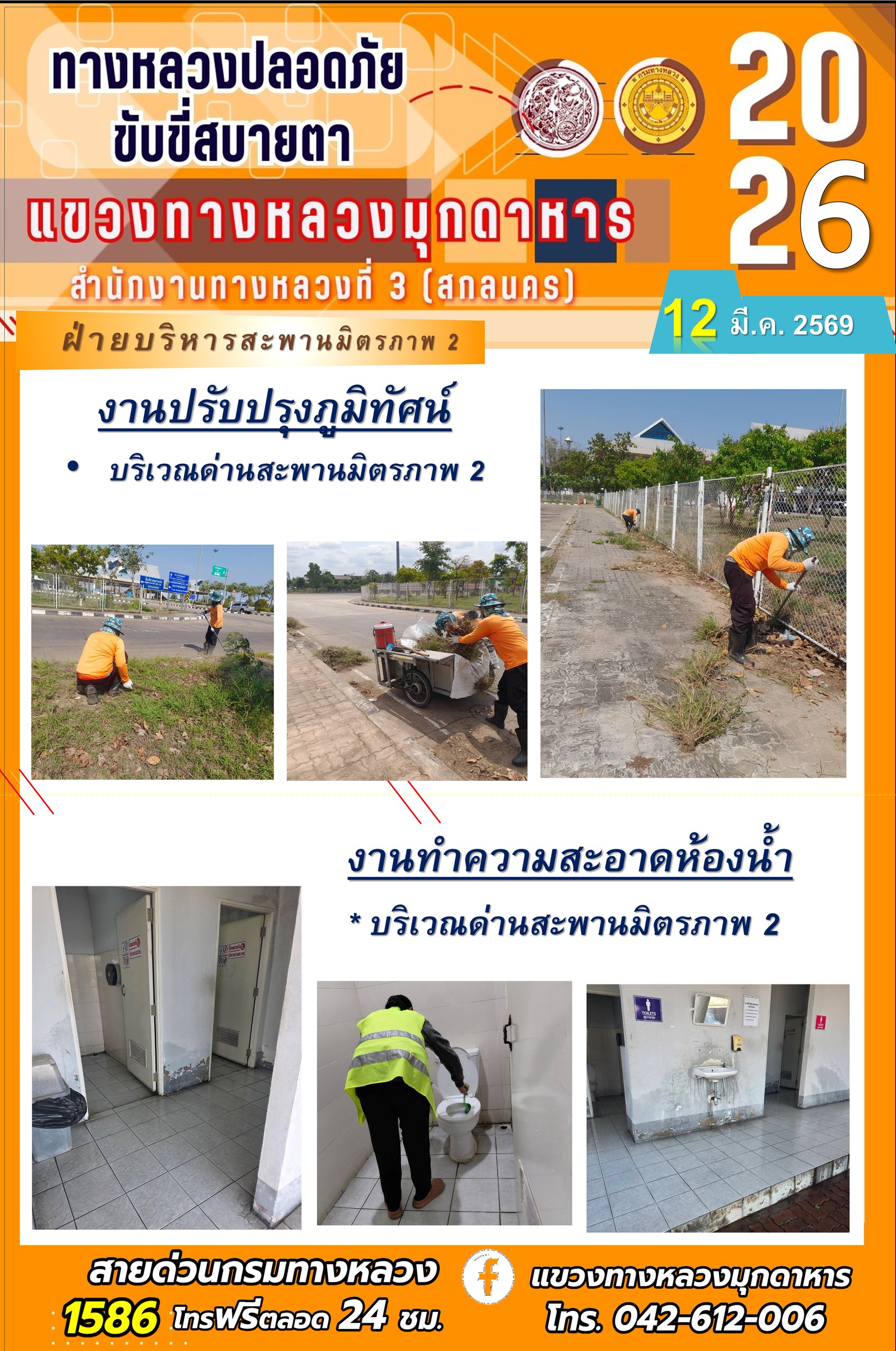 ประจำวันที่ 12 มีนาคม 2569 โครงการทางหลวงปลอดภัย ขับขี่สบายตา หน่วยงานในสังกัดแขวงทางหลวง