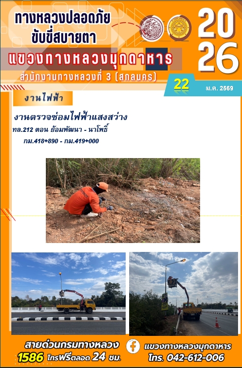 ประจำวันที่ 22 มกราคม 2569 โครงการทางหลวงปลอดภัย ขับขี่สบายตา หน่วยงานในสังกัดแขวงทางหลวง