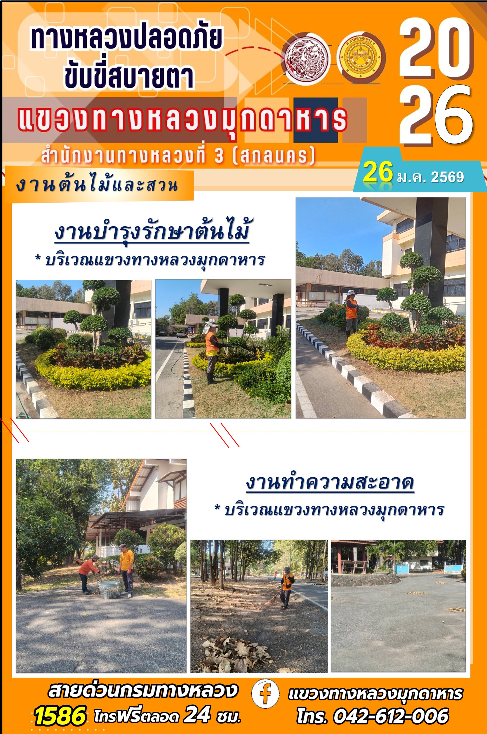 ประจำวันที่ 26 มกราคม 2569 โครงการทางหลวงปลอดภัย ขับขี่สบายตา หน่วยงานในสังกัดแขวงทางหลวง