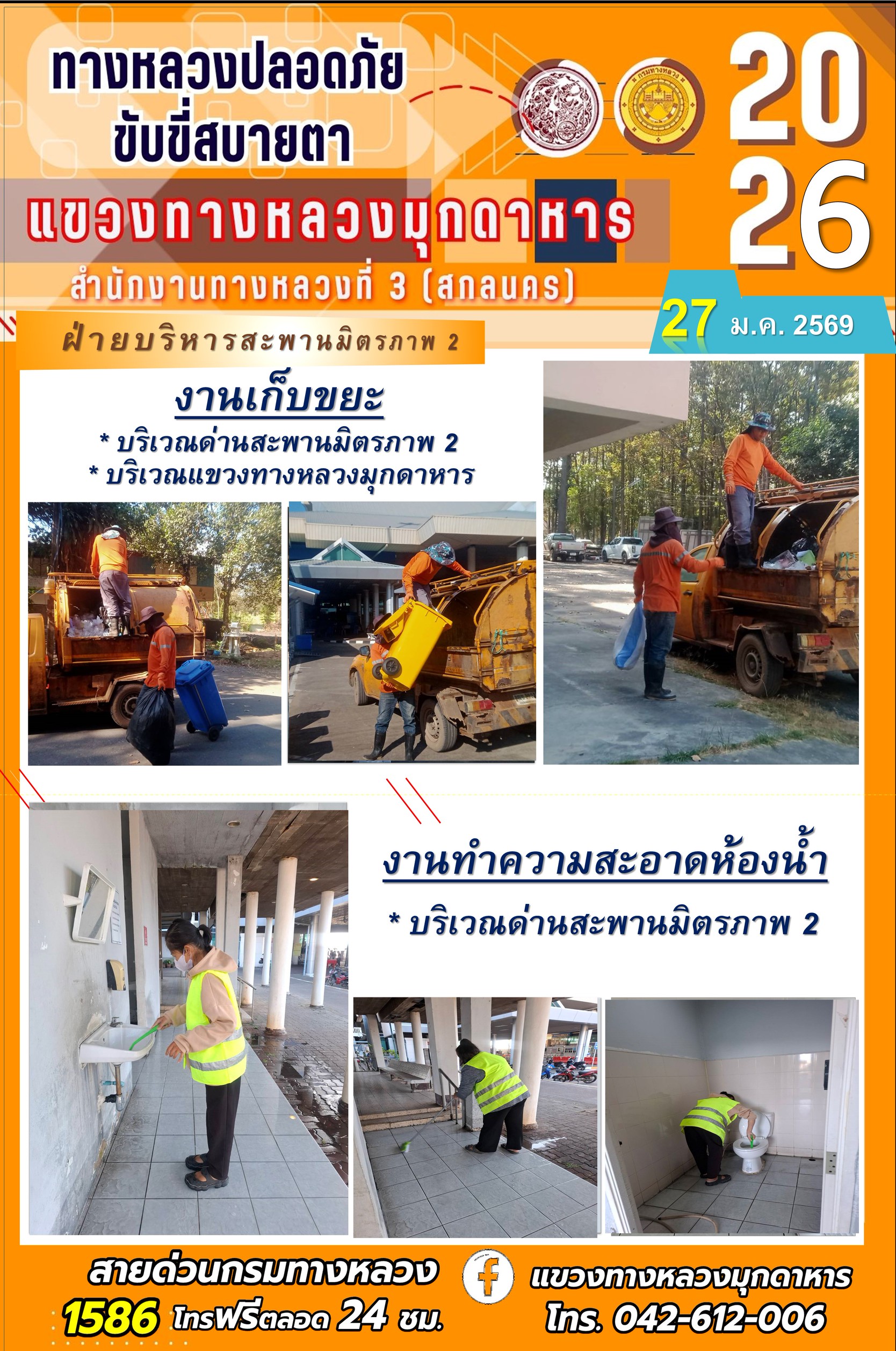 ประจำวันที่ 27 มกราคม 2569 โครงการทางหลวงปลอดภัย ขับขี่สบายตา หน่วยงานในสังกัดแขวงทางหลวง