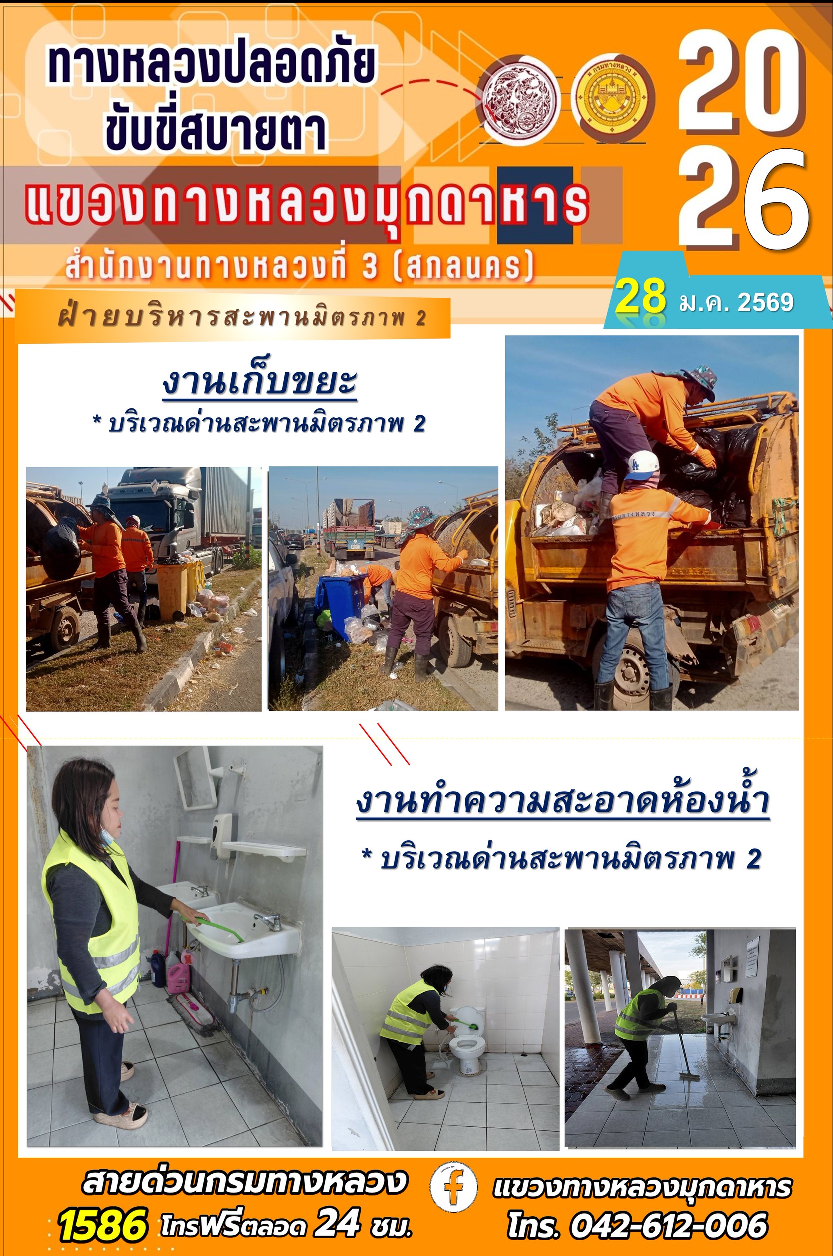 ประจำวันที่ 28 มกราคม 2569 โครงการทางหลวงปลอดภัย ขับขี่สบายตา หน่วยงานในสังกัดแขวงทางหลวง