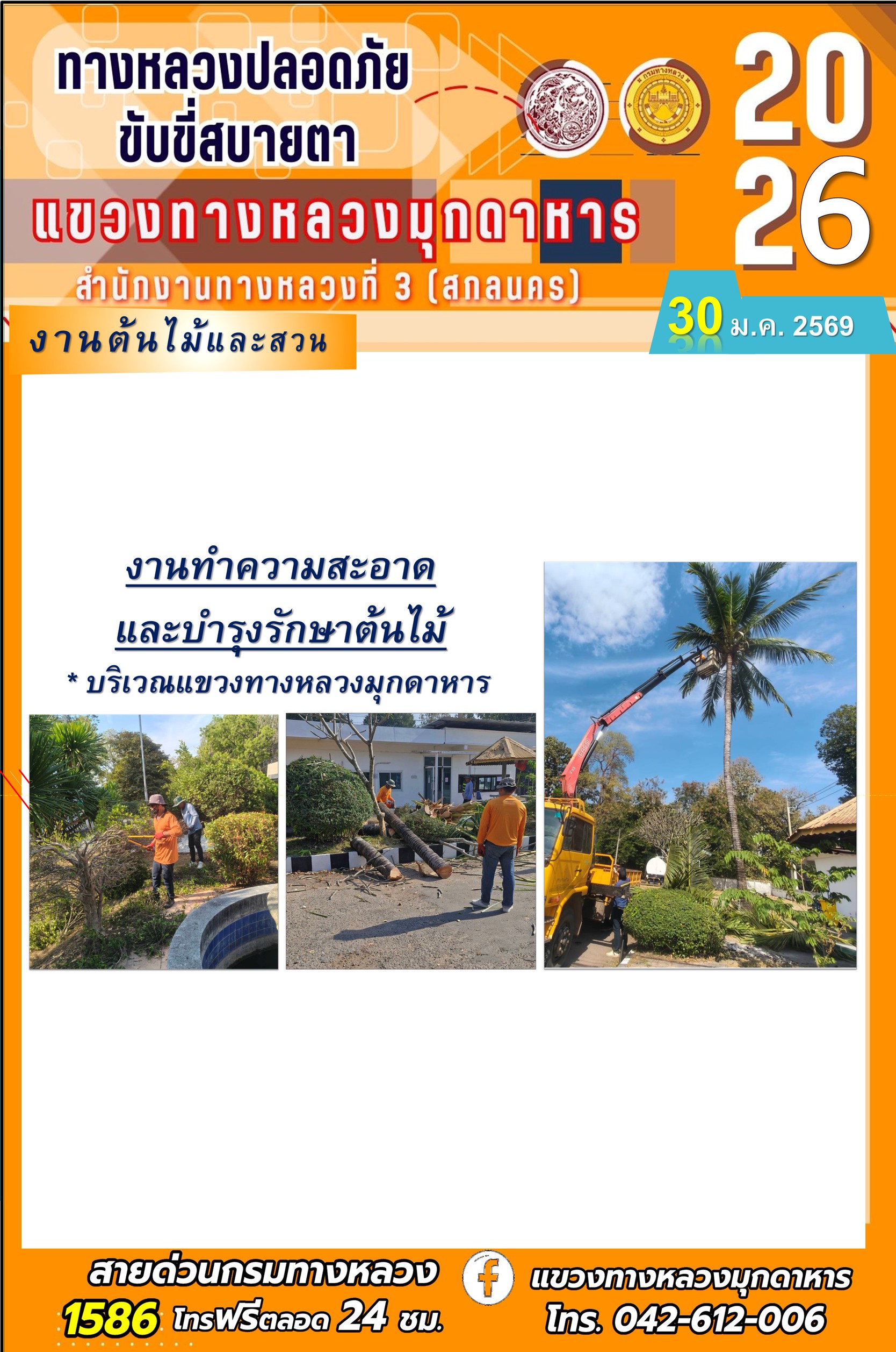 ประจำวันที่ 30 มกราคม 2569 โครงการทางหลวงปลอดภัย ขับขี่สบายตา หน่วยงานในสังกัดแขวงทางหลวง