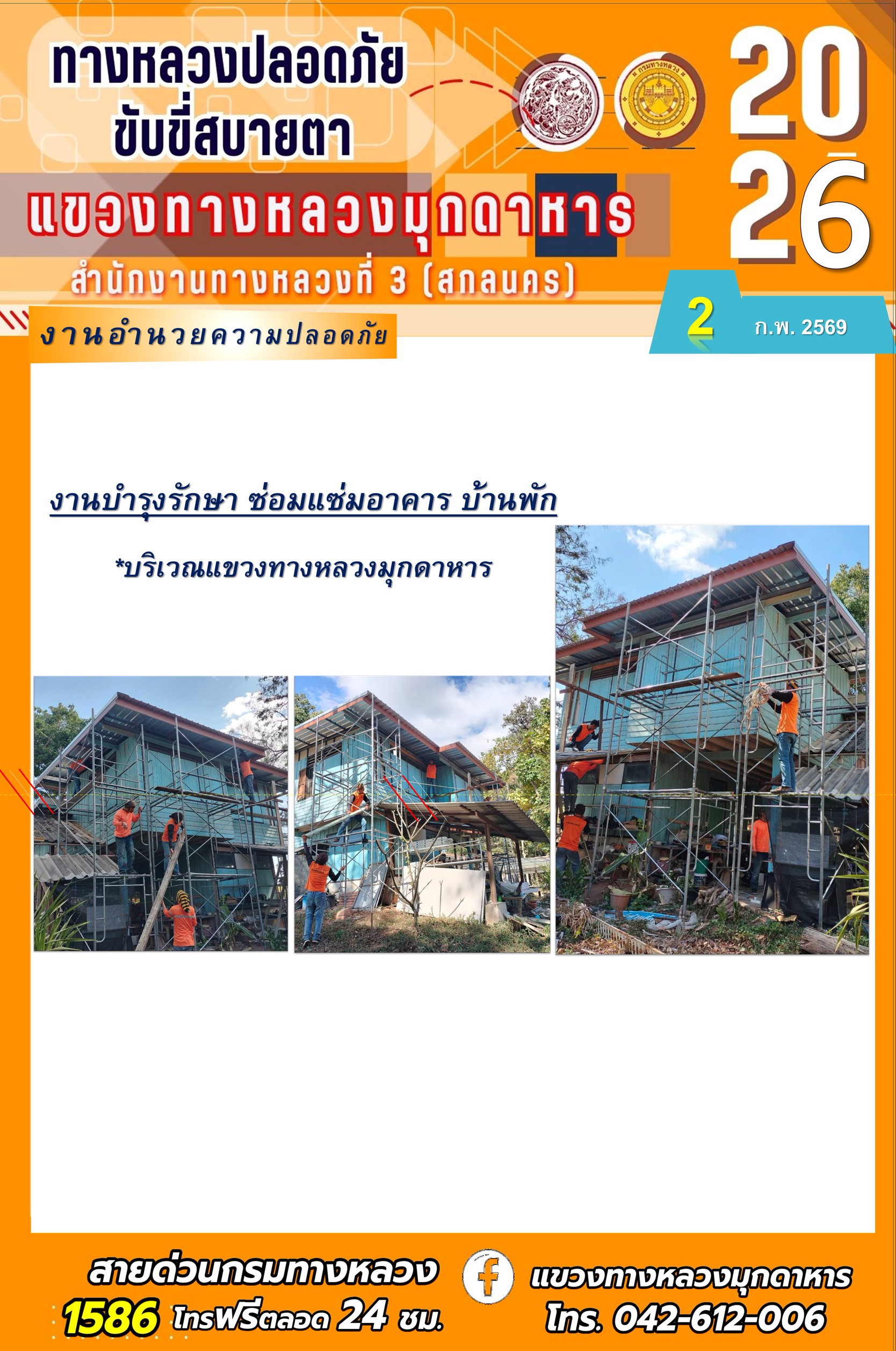 ประจำวันที่ 2 กุมภาพันธ์ 2569 โครงการทางหลวงปลอดภัย ขับขี่สบายตา หน่วยงานในสังกัดแขวงทางหลวง