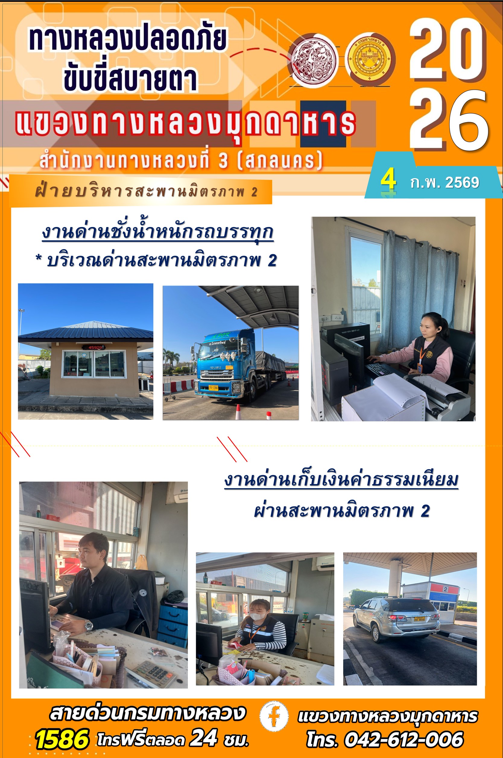 ประจำวันที่ 4 กุมภาพันธ์ 2569 โครงการทางหลวงปลอดภัย ขับขี่สบายตา หน่วยงานในสังกัดแขวงทางหลวง