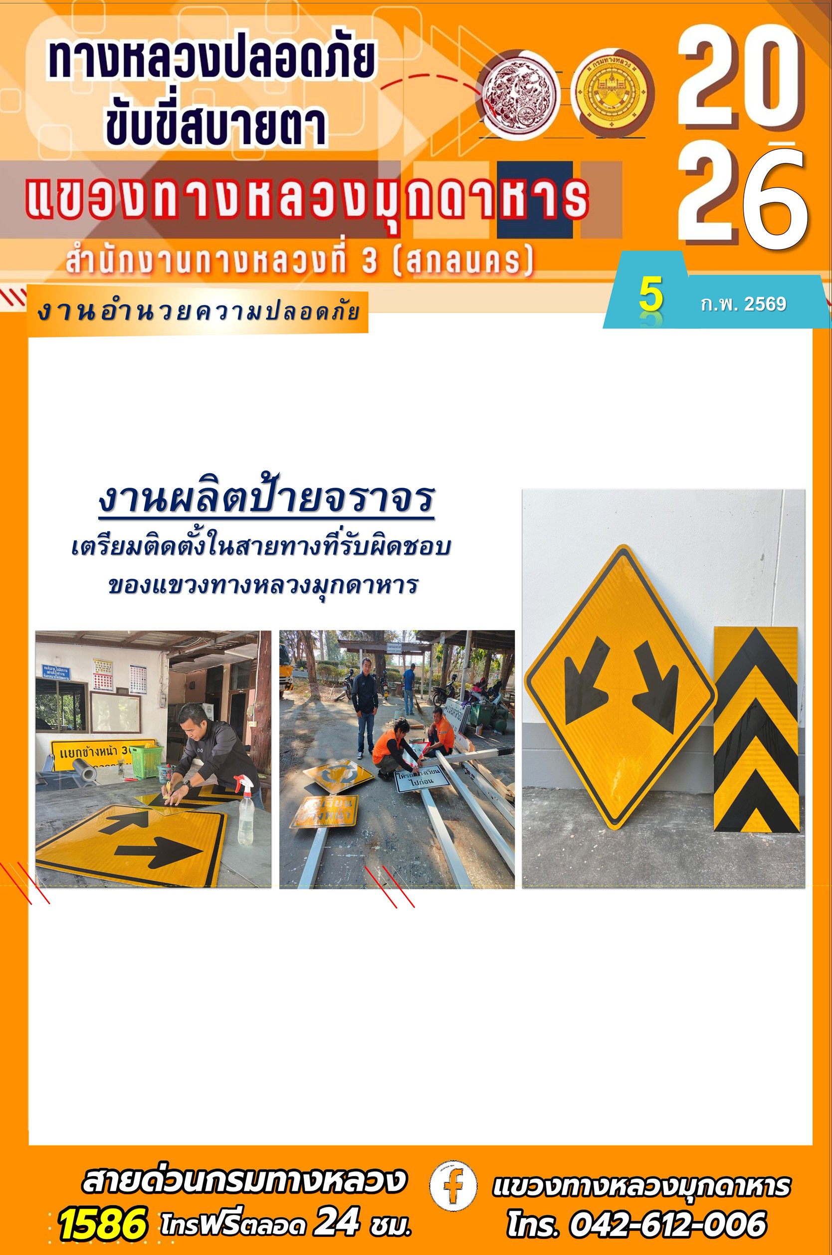 ประจำวันที่ 5 กุมภาพันธ์ 2569 โครงการทางหลวงปลอดภัย ขับขี่สบายตา หน่วยงานในสังกัดแขวงทางหลวง
