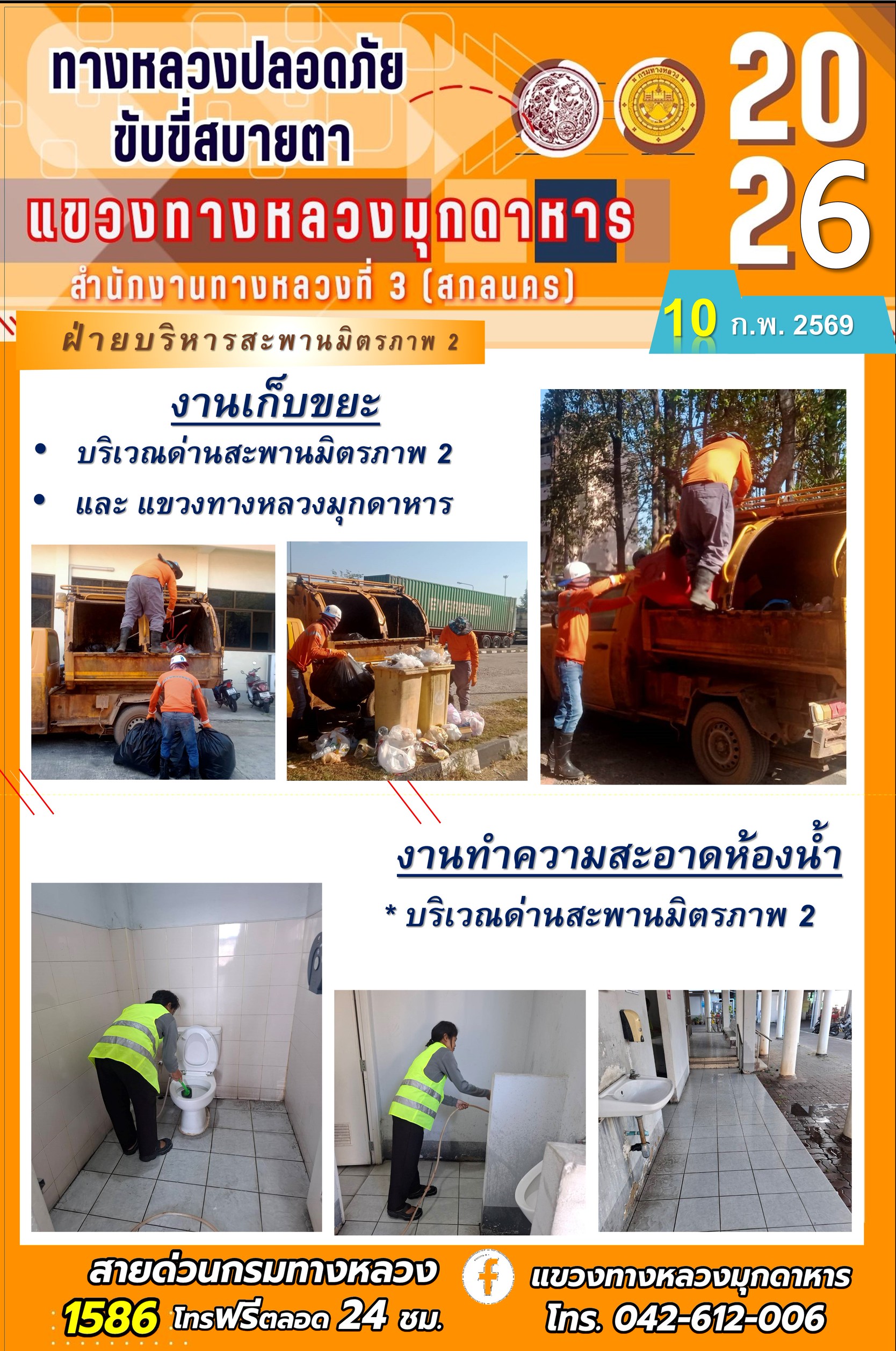 ประจำวันที่ 10 กุมภาพันธ์ 2569 โครงการทางหลวงปลอดภัย ขับขี่สบายตา หน่วยงานในสังกัดแขวงทางหลวง