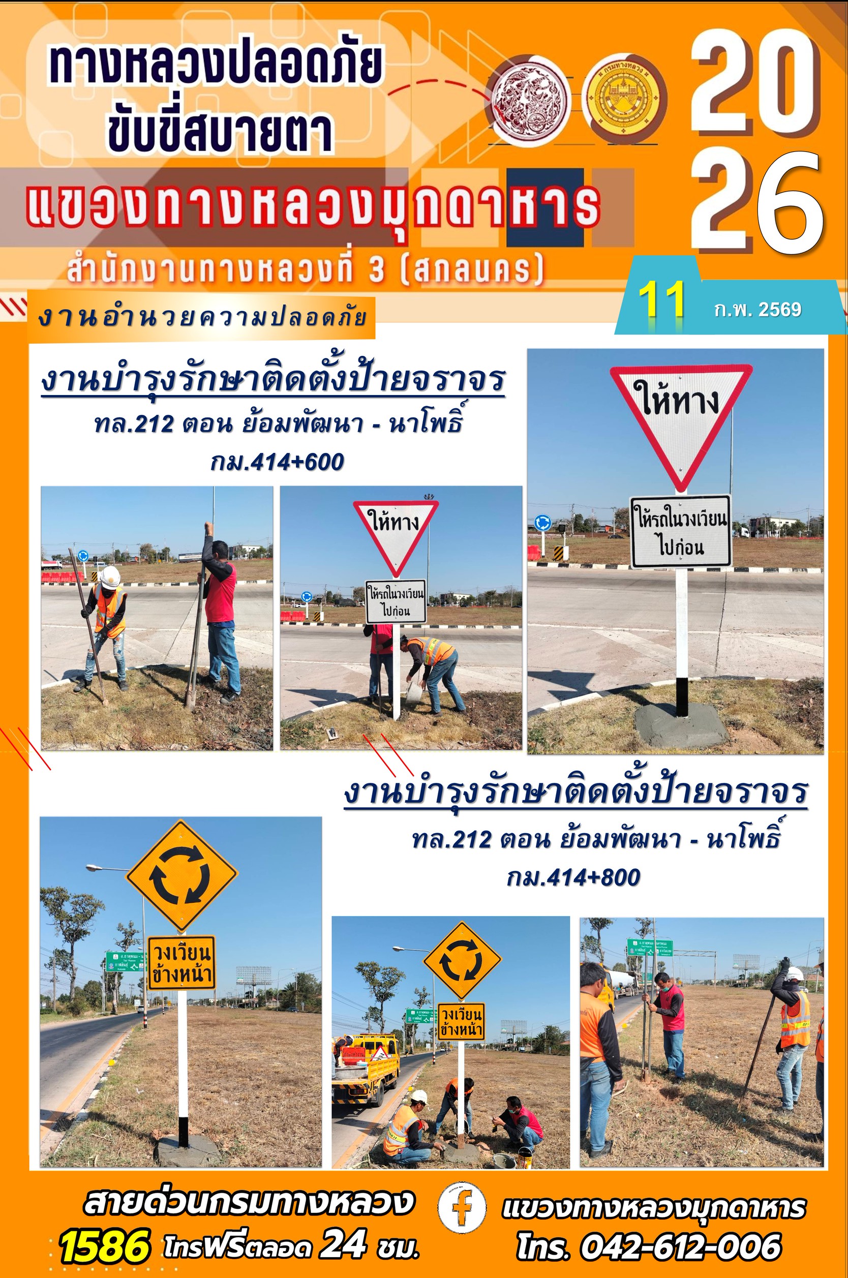 ประจำวันที่ 11 กุมภาพันธ์ 2569 โครงการทางหลวงปลอดภัย ขับขี่สบายตา หน่วยงานในสังกัดแขวงทางหลวง