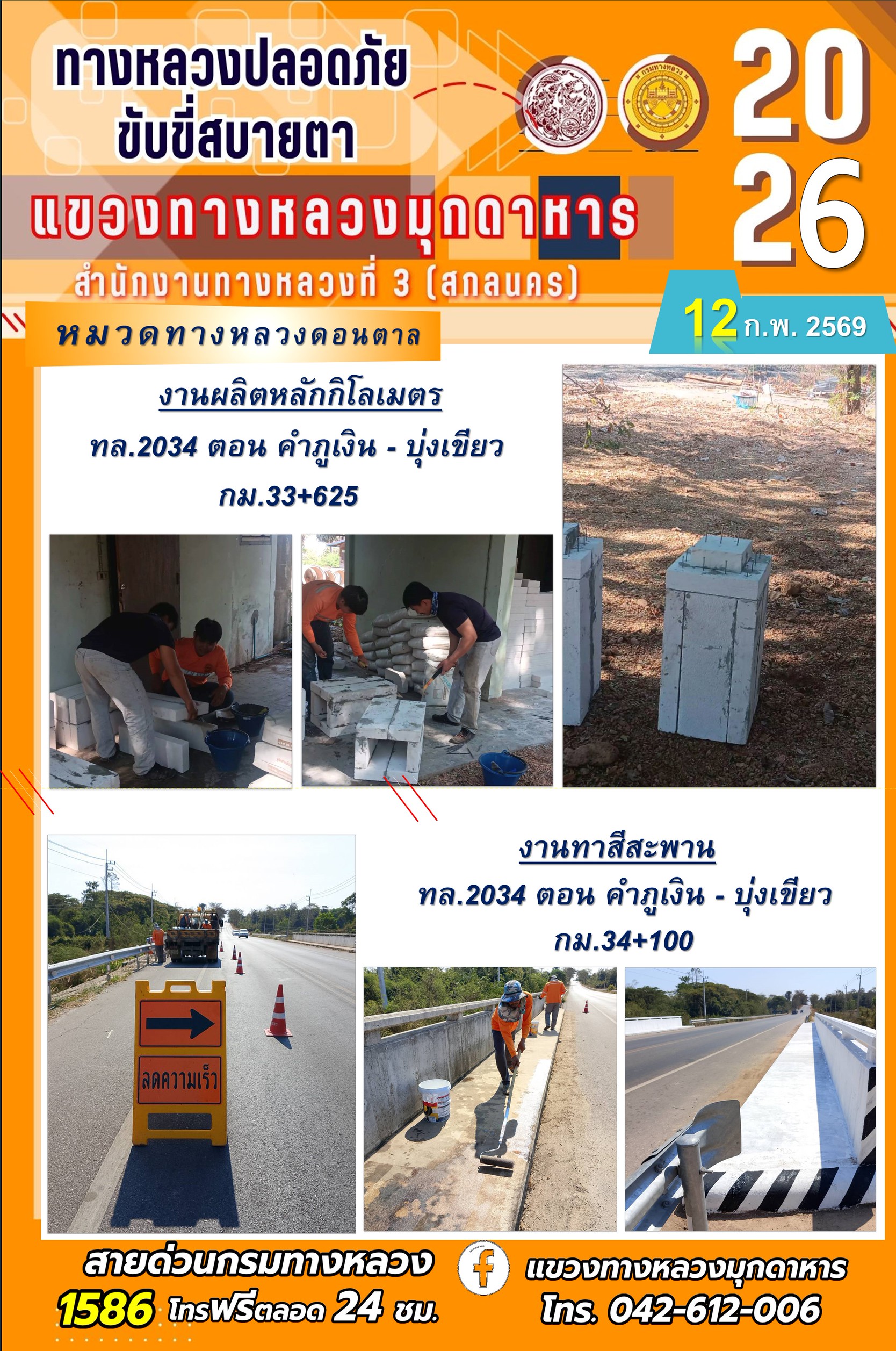 ประจำวันที่ 12 กุมภาพันธ์ 2569 โครงการทางหลวงปลอดภัย ขับขี่สบายตา หน่วยงานในสังกัดแขวงทางหลวง