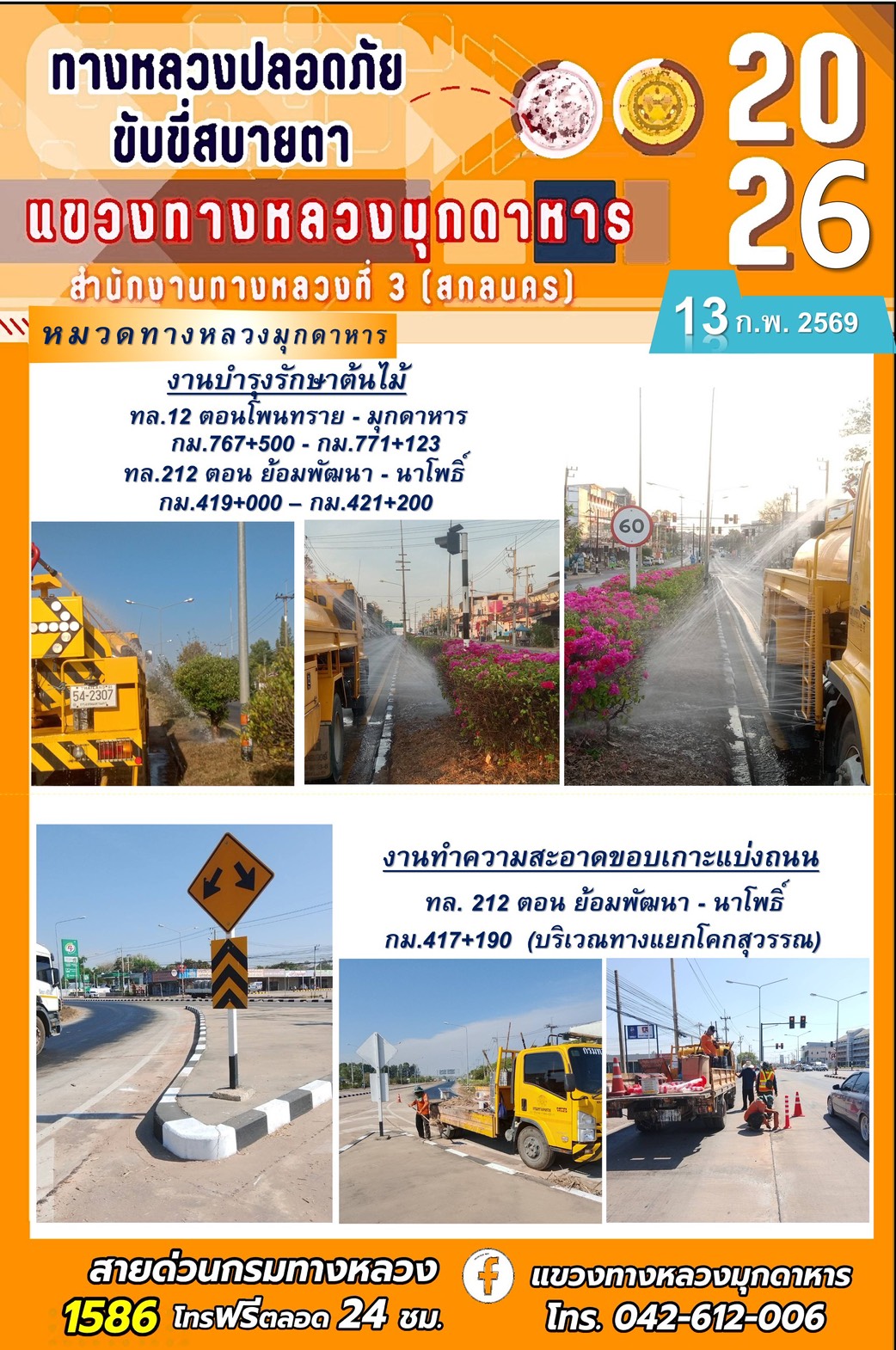 ประจำวันที่ 13 กุมภาพันธ์ 2569 โครงการทางหลวงปลอดภัย ขับขี่สบายตา หน่วยงานในสังกัดแขวงทางหลวง