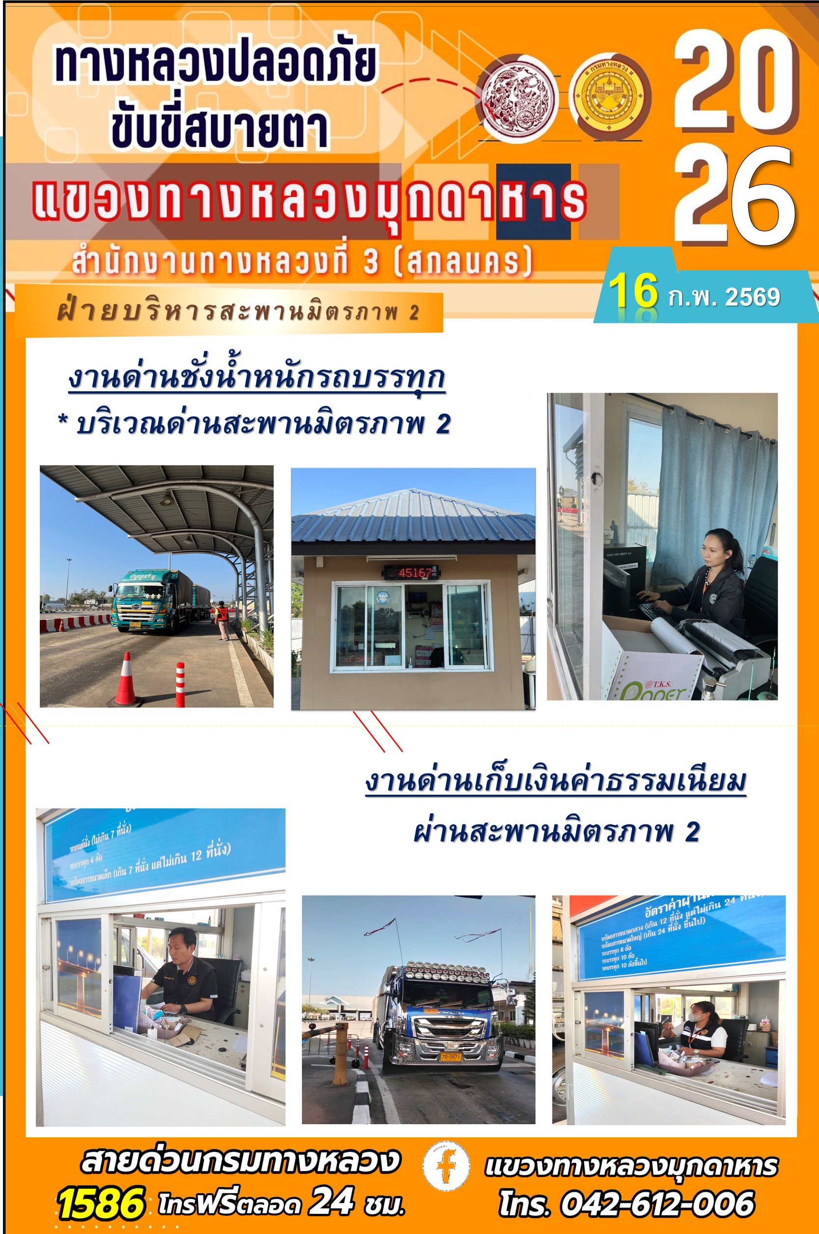ประจำวันที่ 16 กุมภาพันธ์ 2569 โครงการทางหลวงปลอดภัย ขับขี่สบายตา หน่วยงานในสังกัดแขวงทางหลวง