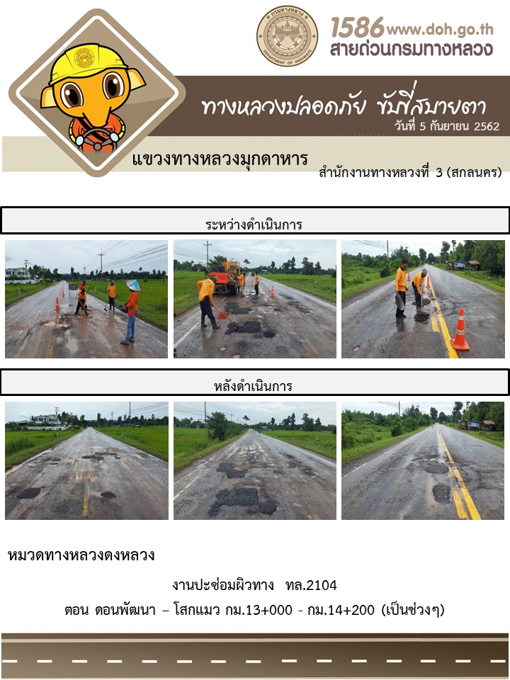 โครงการทางหลวงปลอดภัย ขับขี่สบายตา หน่วยงานในสังกัดแขวง 16 ก.ย.62
