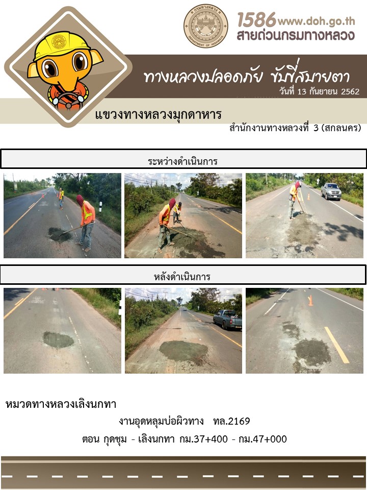 โครงการทางหลวงปลอดภัย ขับขี่สบายตา หน่วยงานในสังกัดแขวง 13 ก.ย.62