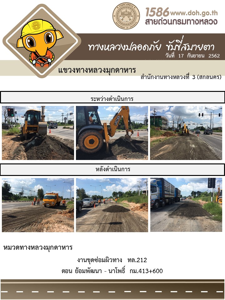 โครงการทางหลวงปลอดภัย ขับขี่สบายตา หน่วยงานในสังกัดแขวง 17 ก.ย.62