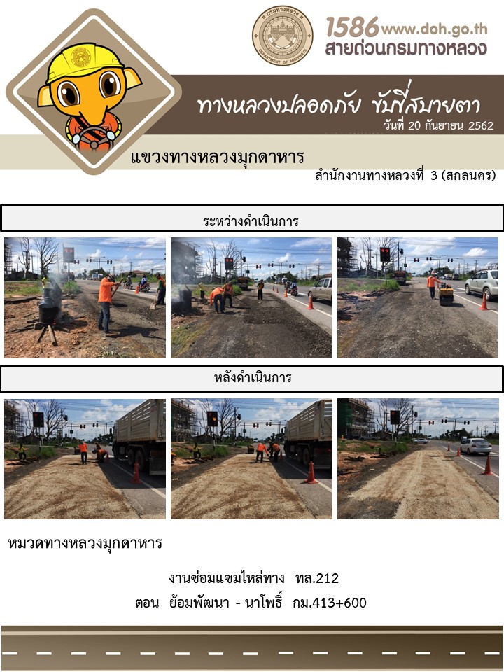 โครงการทางหลวงปลอดภัย ขับขี่สบายตา หน่วยงานในสังกัดแขวง 20 ก.ย.62