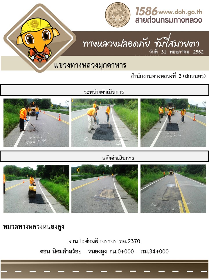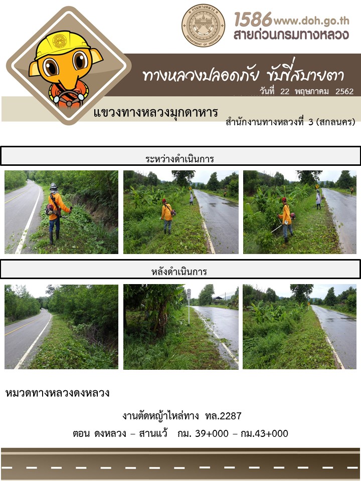 โครงการทางหลวงปลอดภัย ขับขี่สบายตา หน่วยงานได้ในสังกัดแขวง 31 พ.ค. 62