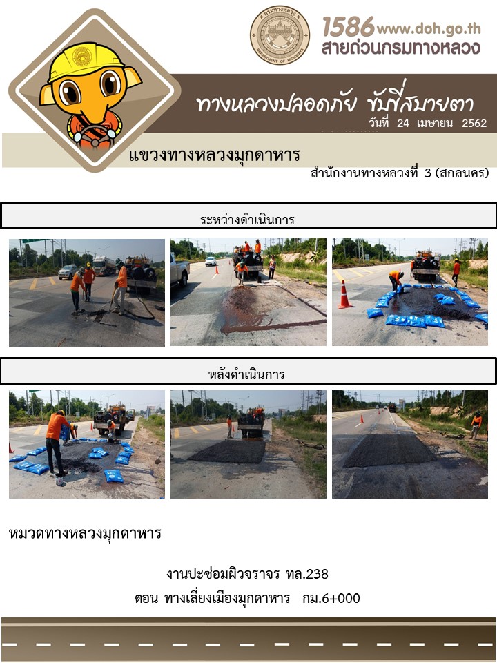 โครงการทางหลวงปลอดภัย ขับขี่สบายตา หน่วยงานในสังกัดแขวง เมษายน 24