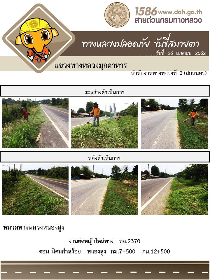 โครงการทางหลวงปลอดภัย ขับขี่สบายตา หน่วยงานในสังกัดแขวง เมษายน 26