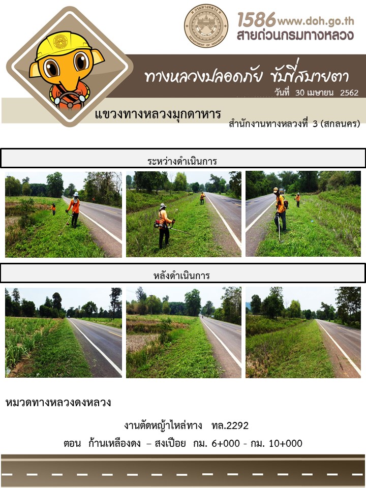โครงการทางหลวงปลอดภัย ขับขี่สบายตา หน่วยงานในสังกัดแขวง เมษายน 30
