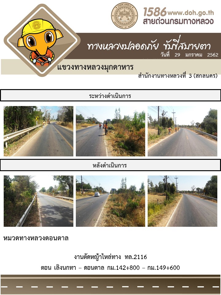 โครงการทางหลวงปลอดภัย ขับขี่สบายตา หน่วยงานในสังกัดแขวง มกราคม 29