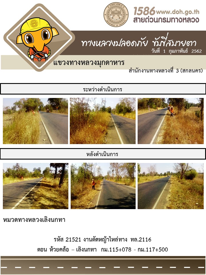 โครงการทางหลวงปลอดภัย ขับขี่สบายตา หน่วยงานในสังกัดแขวง กุมภาพันธ์ 1