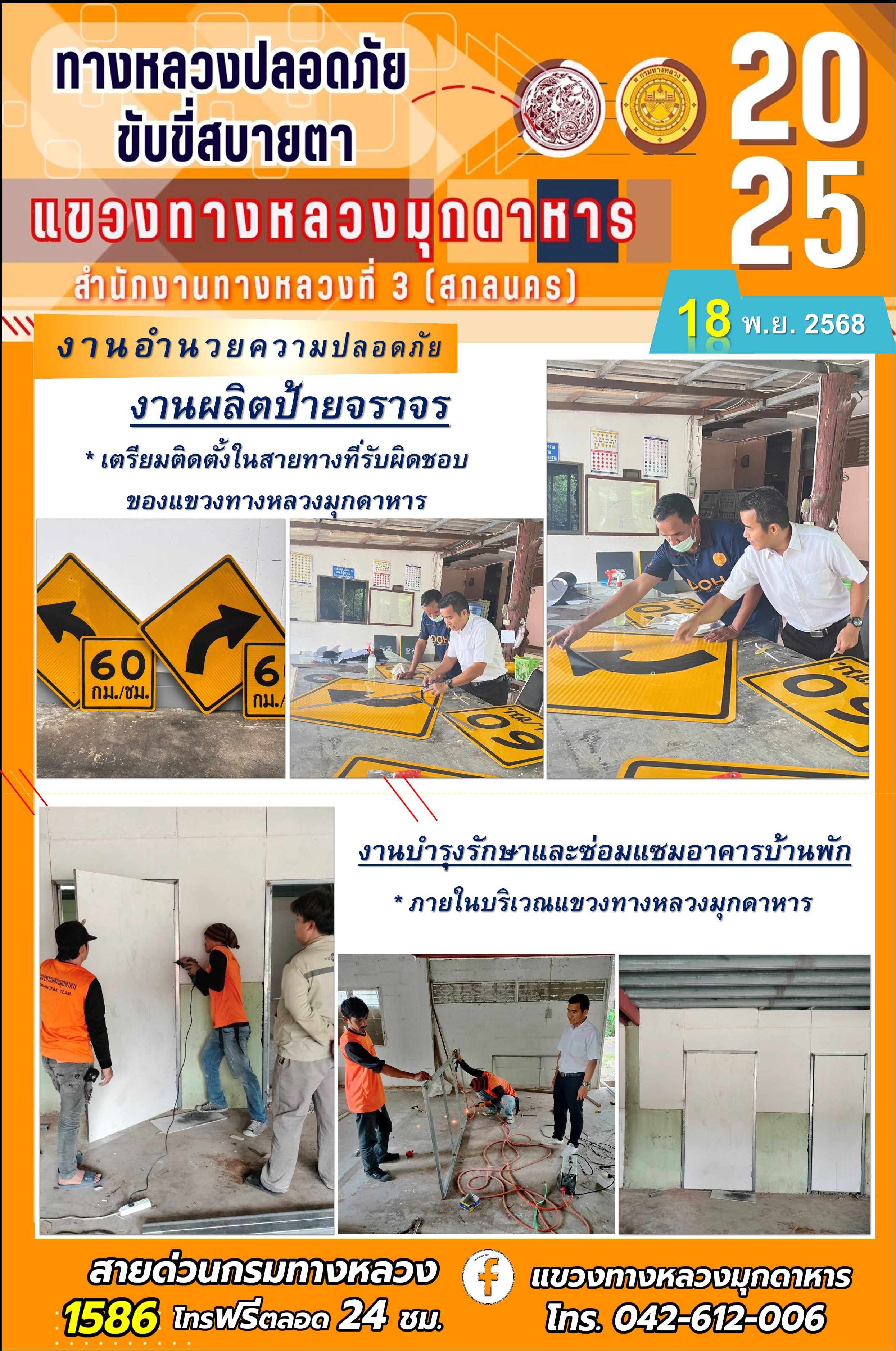 ประจำวันที่ 18.11.2568 โครงการทางหลวงปลอดภัย ขับขี่สบายตา หน่วยงานในสังกัดแขวงทางหลวงมุกดาหาร