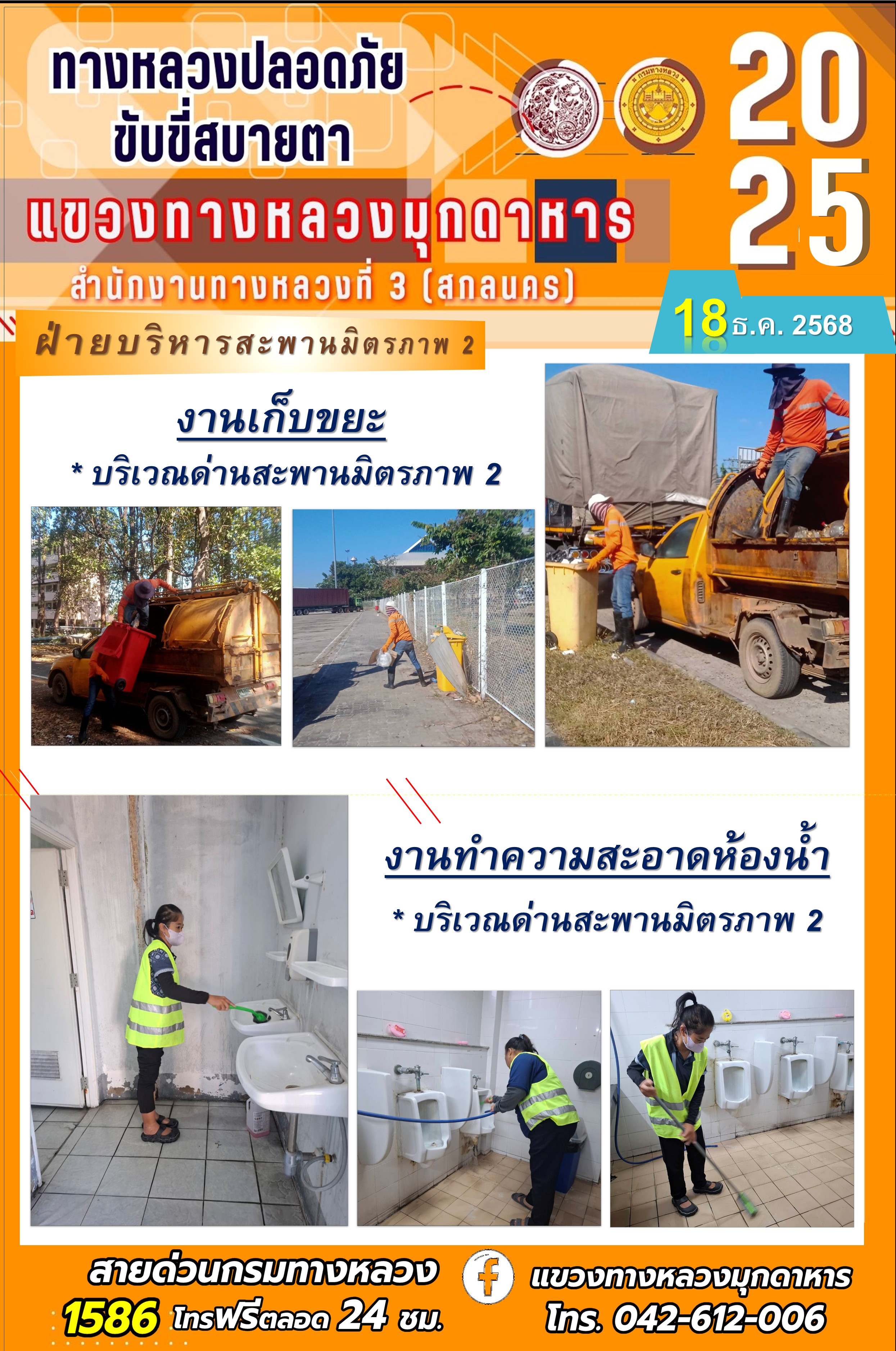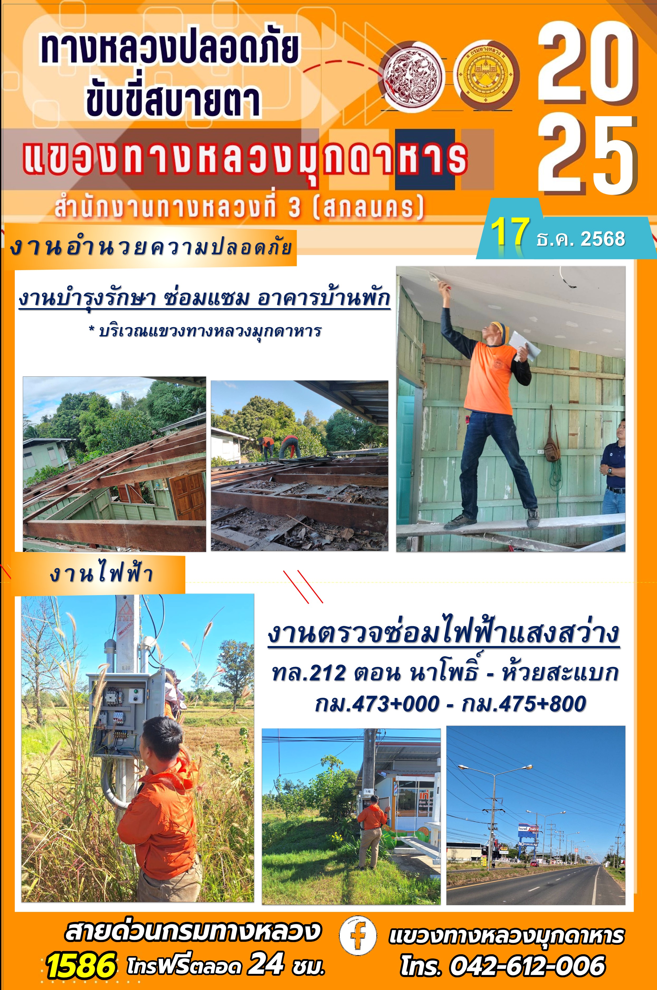 ประจำวันที่ 17.12.2568 โครงการทางหลวงปลอดภัย ขับขี่สบายตา หน่วยงานในสังกัดแขวงทางหลวงมุกดาหาร