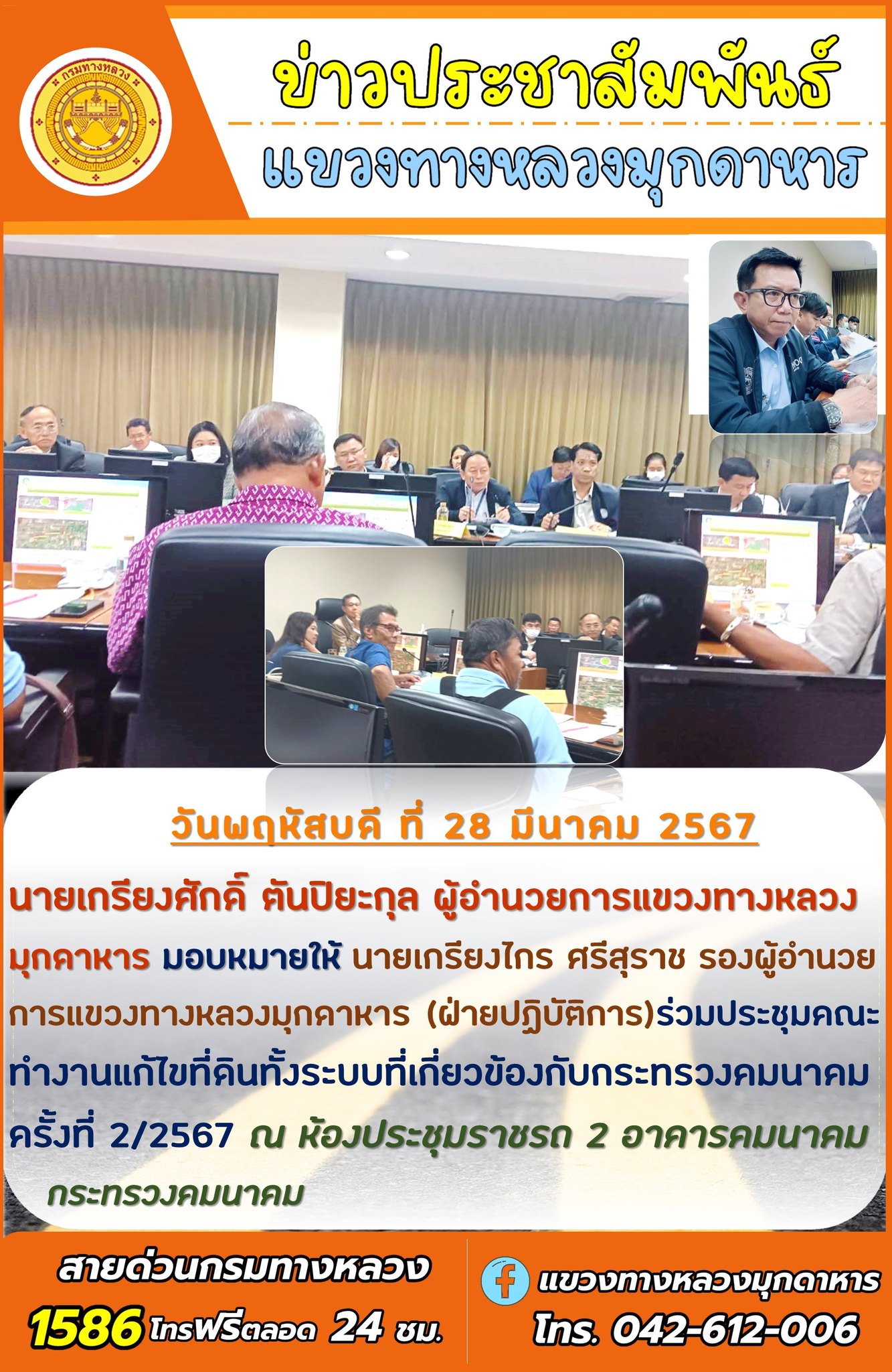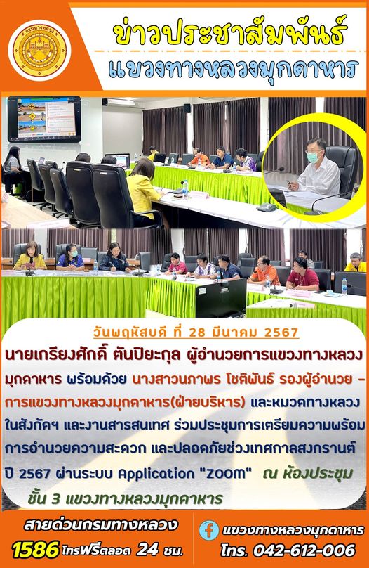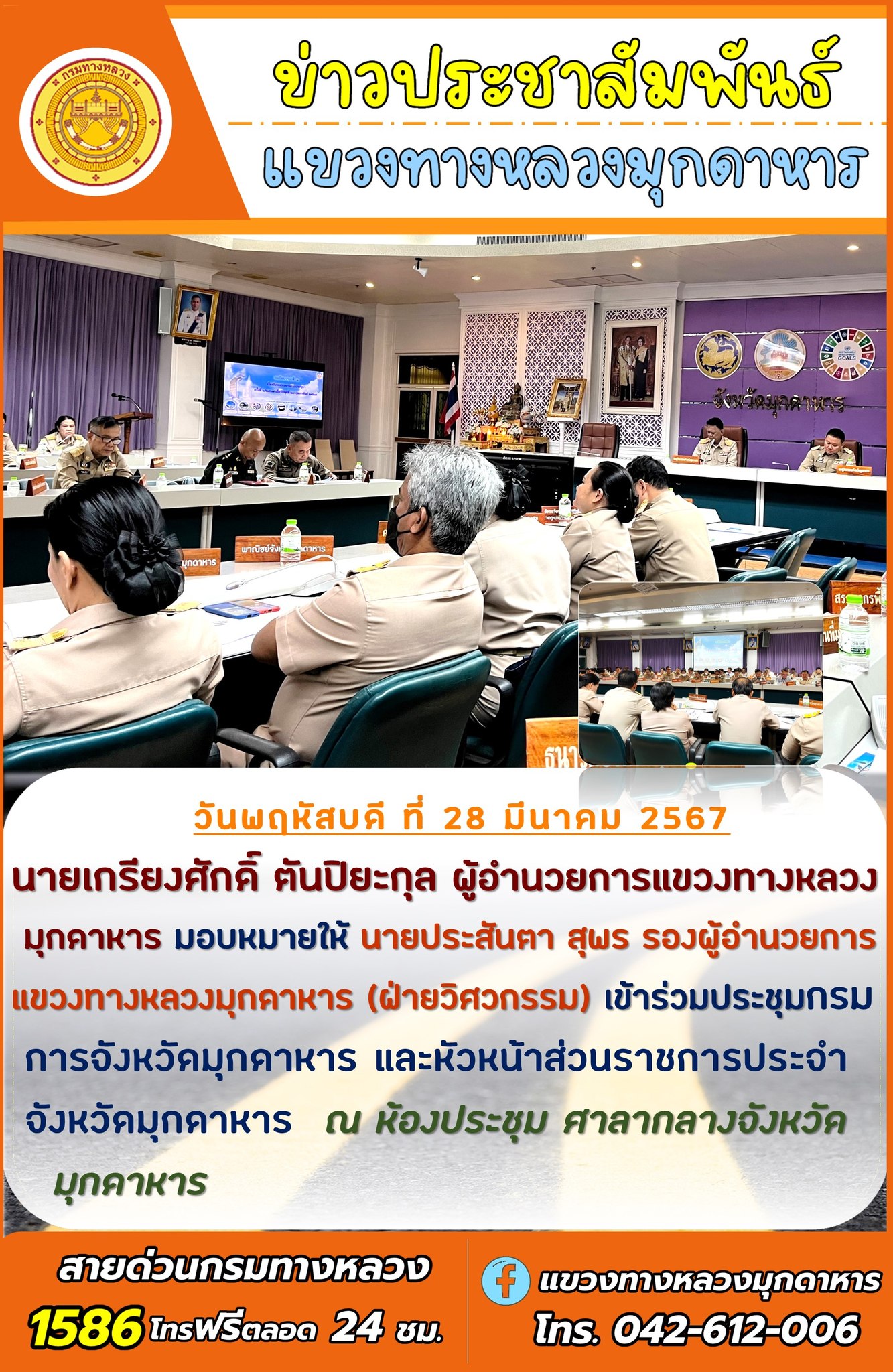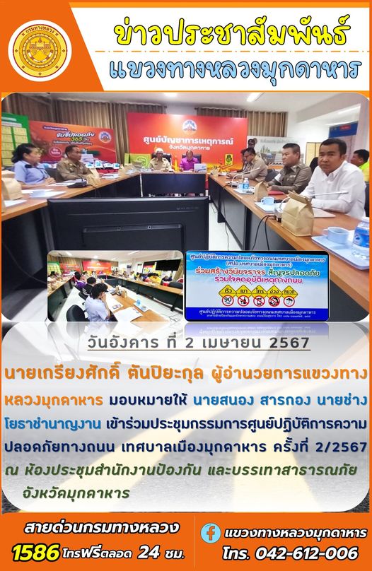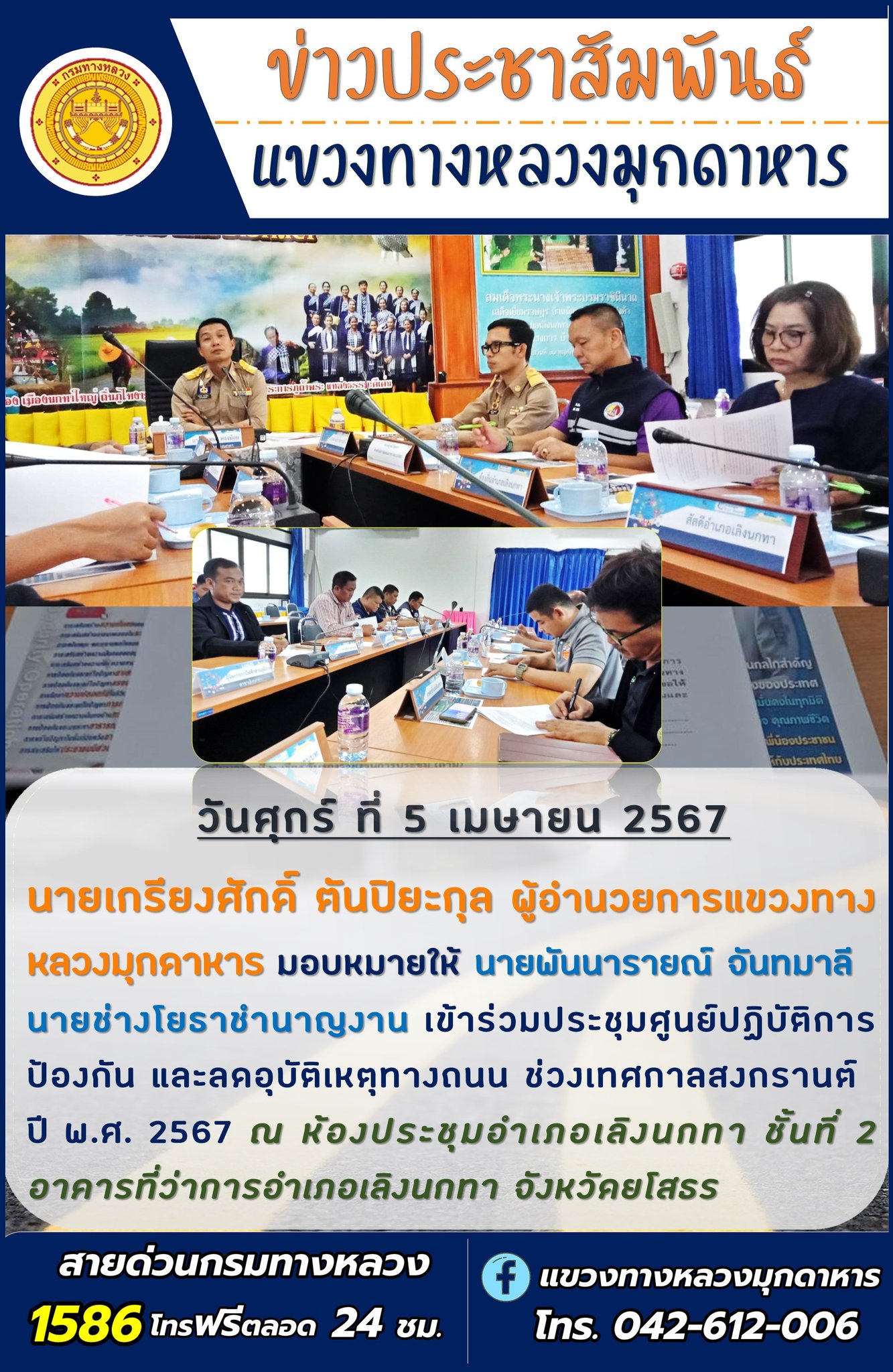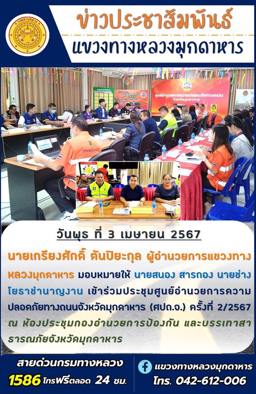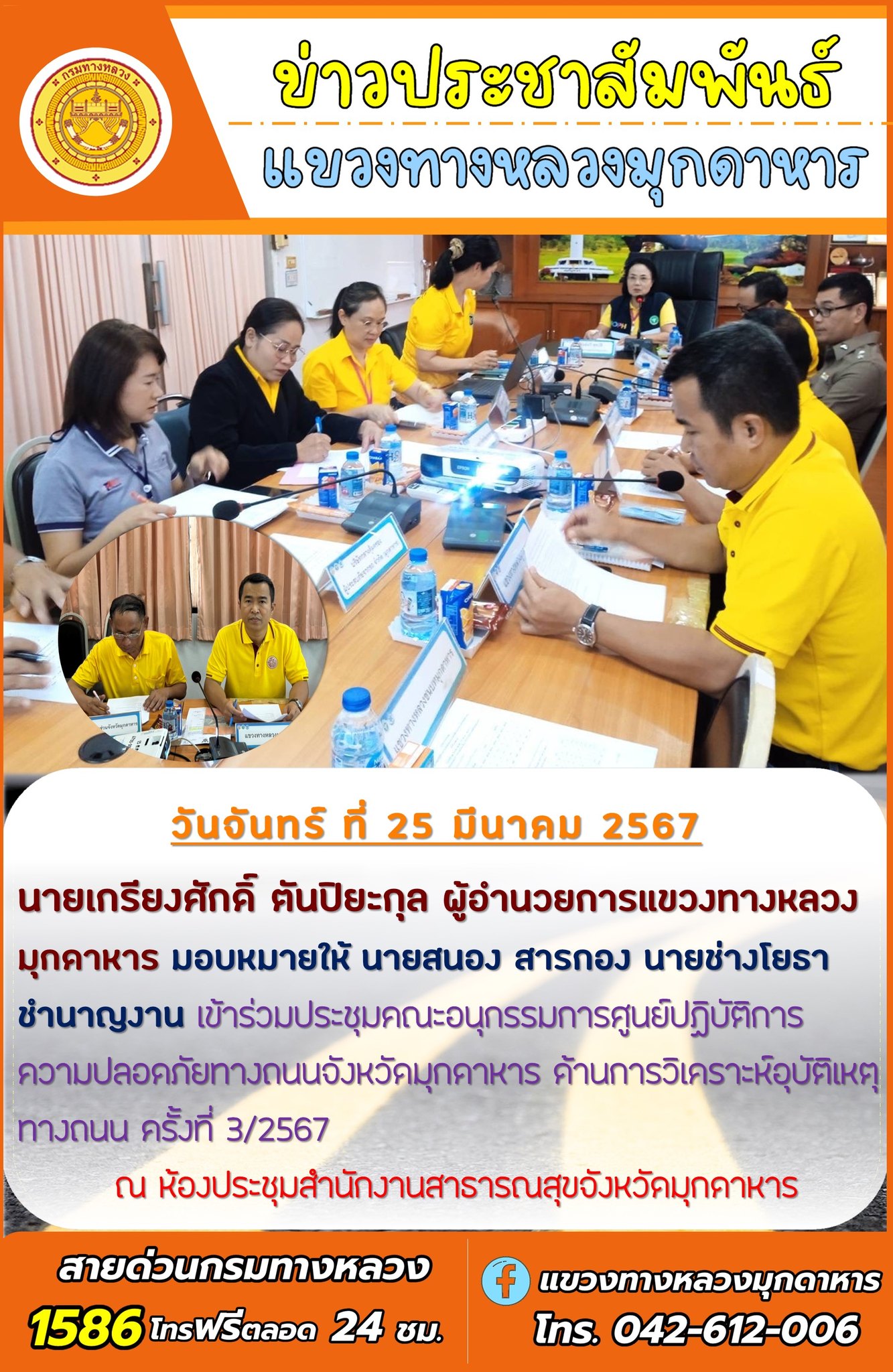เข้าร่วมประชุมคณะอนุกรรมการศูนย์ปฏิบัติการความปลอดภัยทางถนนจังหวัดมุกดาหาร ประจำวันที่ 25 มีนาคม 2567