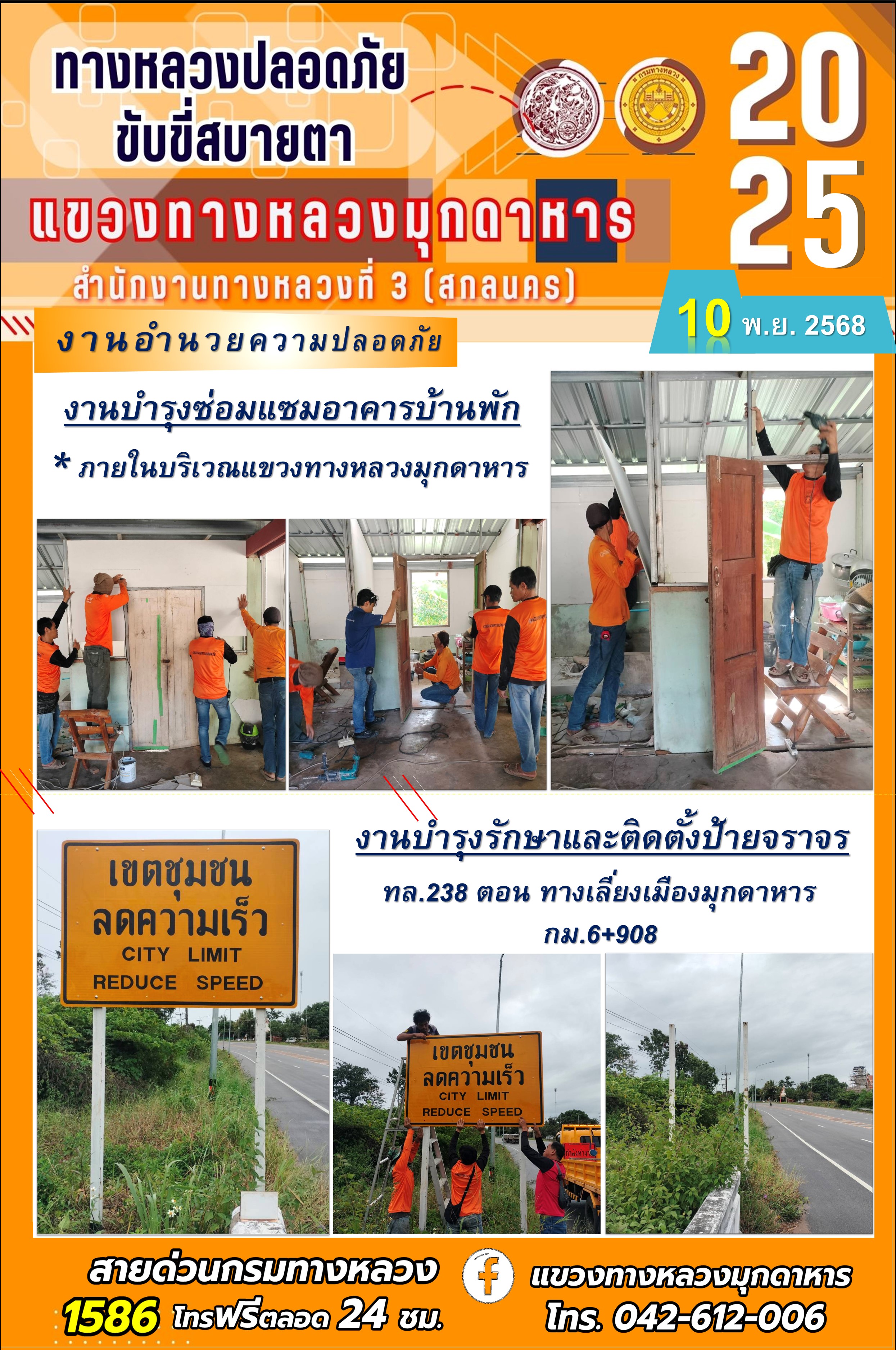 ประจำวันที่ 10.11.2568 โครงการทางหลวงปลอดภัย ขับขี่สบายตา หน่วยงานในสังกัดแขวงทางหลวงมุกดาหาร