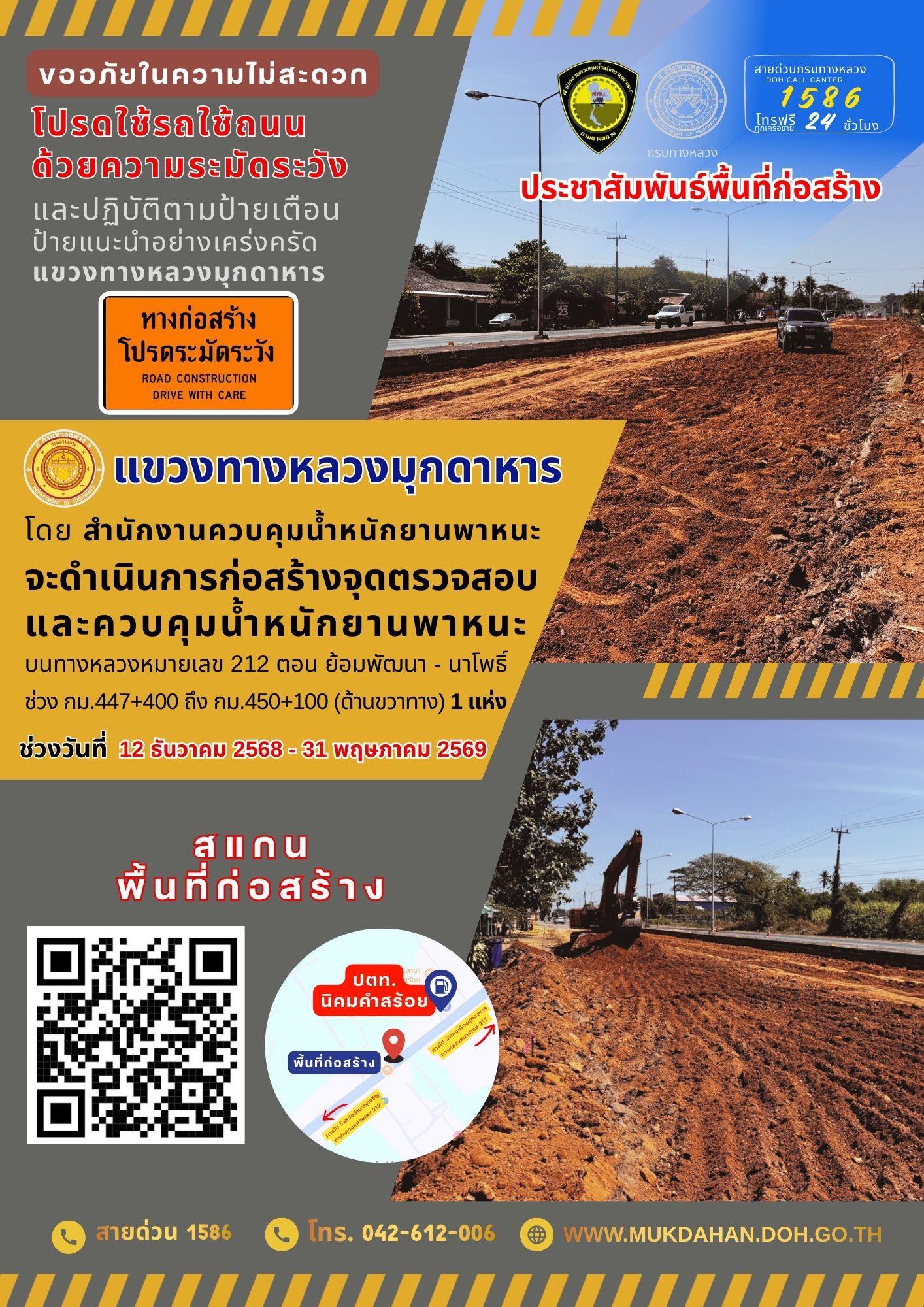 ดำเนินการก่อสร้างจุดตรวจสอบและควบคุมน้ำหนักยานพาหนะ บนทางหลวงหมายเลข 212