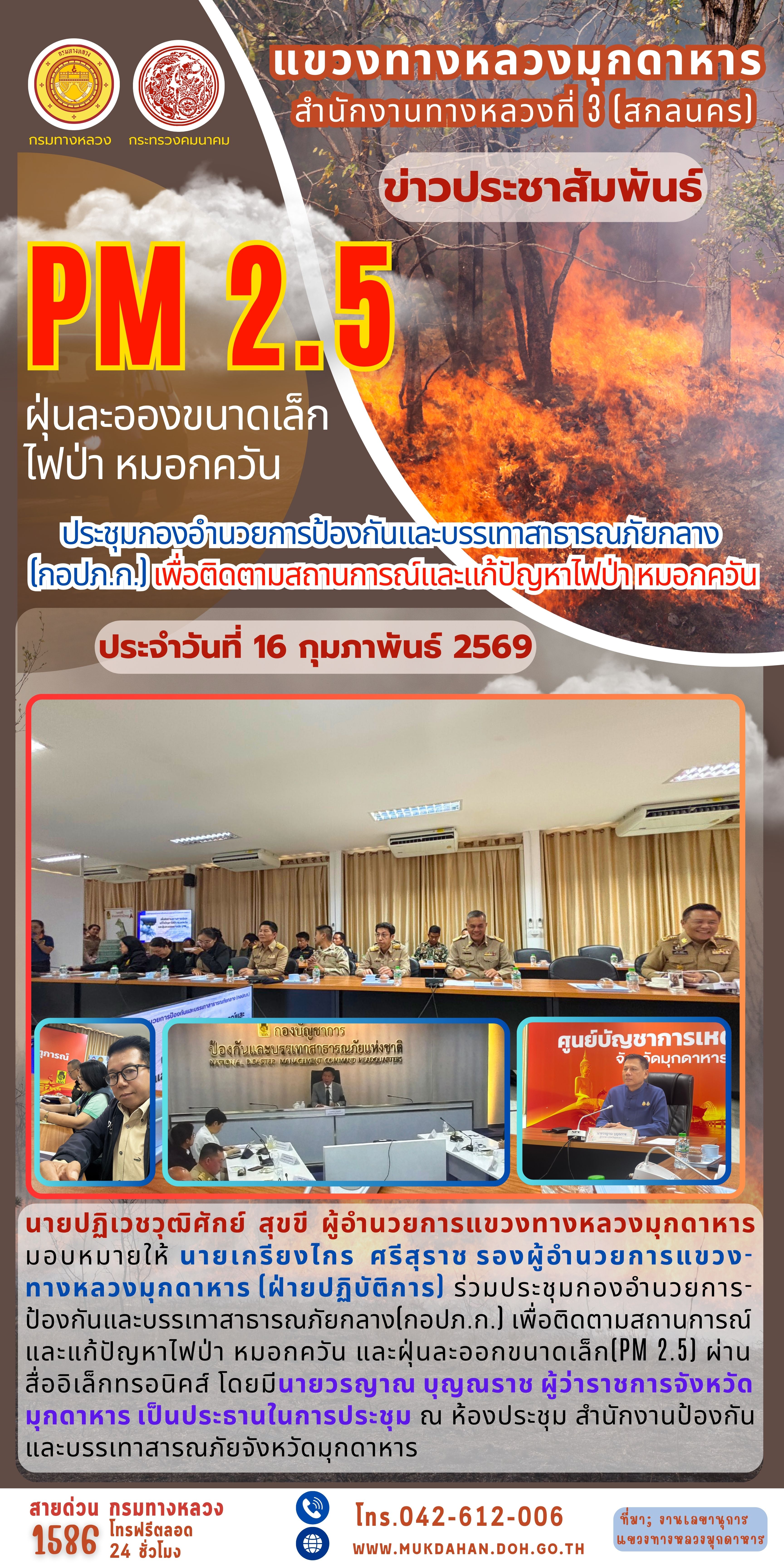 ร่วมประชุมกองอำนวยการป้องกันและบรรเทาสาธารณภัยกลาง(กอปภ.ก.) เพื่อติดตามสถานการณ์และแก้ปัญหาไฟป่า หมอกควัน และฝุ่นละออกขนาดเล็ก(PM 2.5