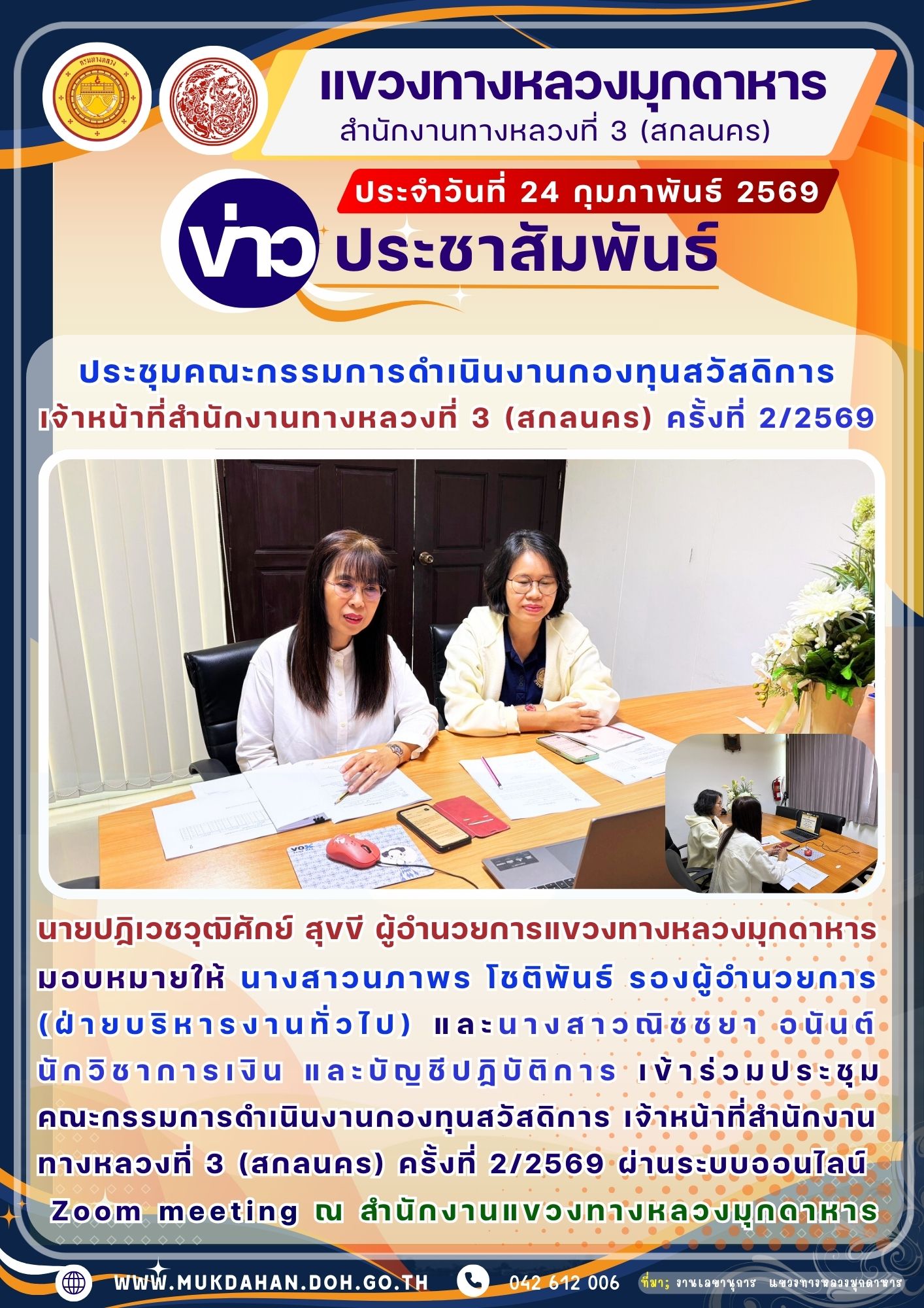 เข้าร่วมประชุมคณะกรรมการดำเนินงานกองทุนสวัสดิการ เจ้าหน้าที่สำนักงานทางหลวงที่ 3 (สกลนคร) ครั้งที่ 2/2569