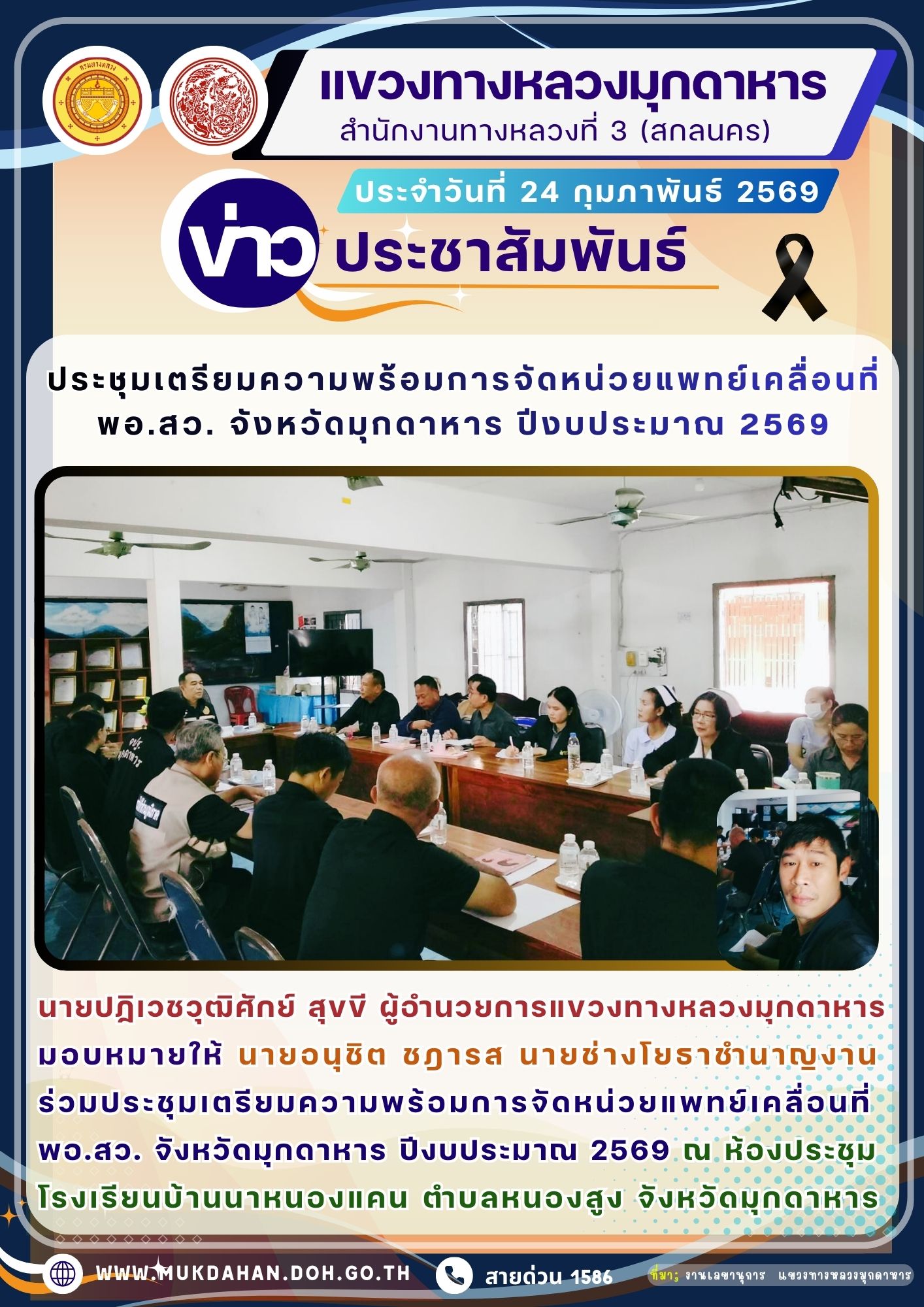 ร่วมประชุมเตรียมความพร้อมการจัดหน่วยแพทย์เคลื่อนที่ พอ.สว. จังหวัดมุกดาหาร ปีงบประมาณ 2569